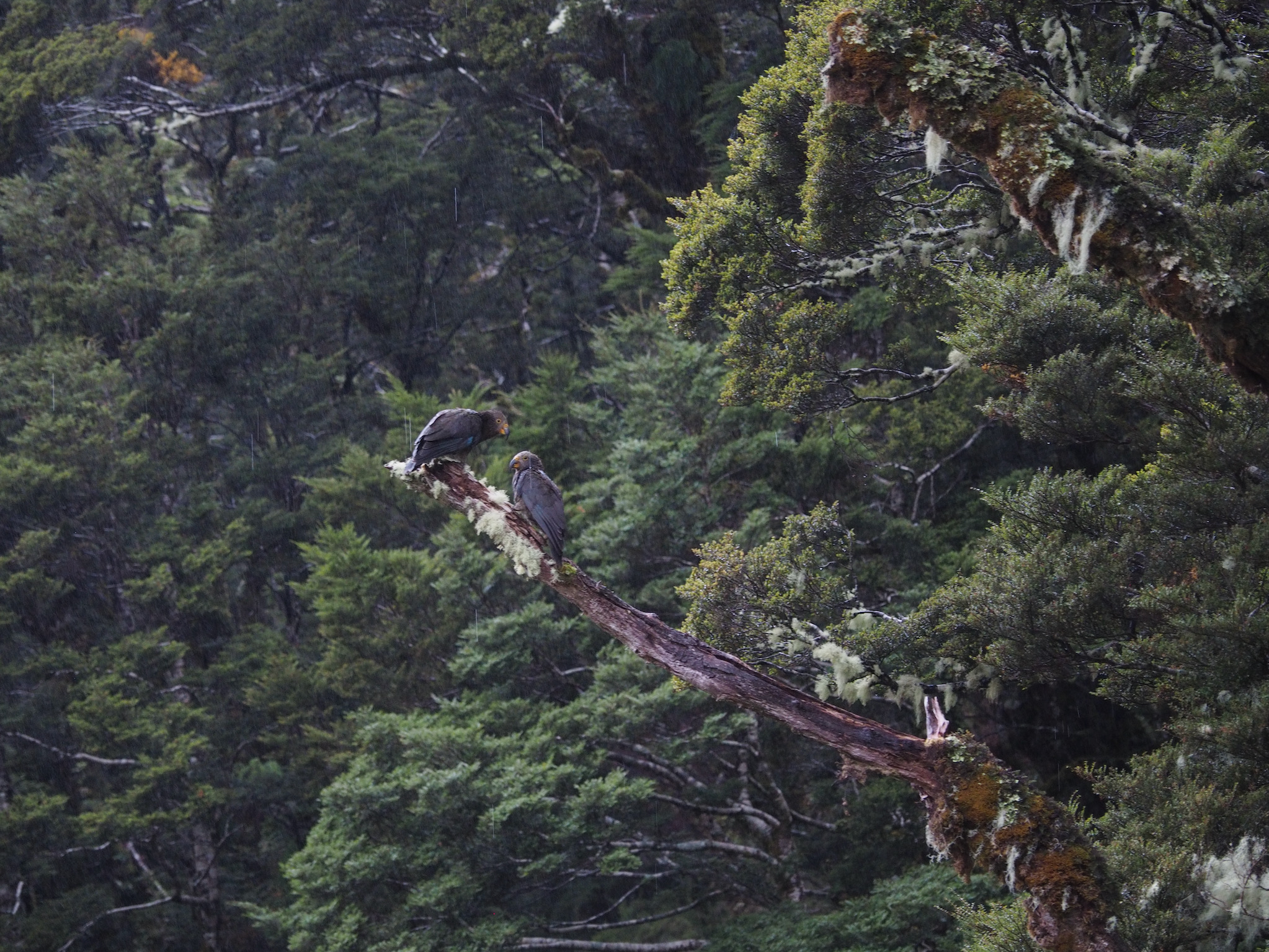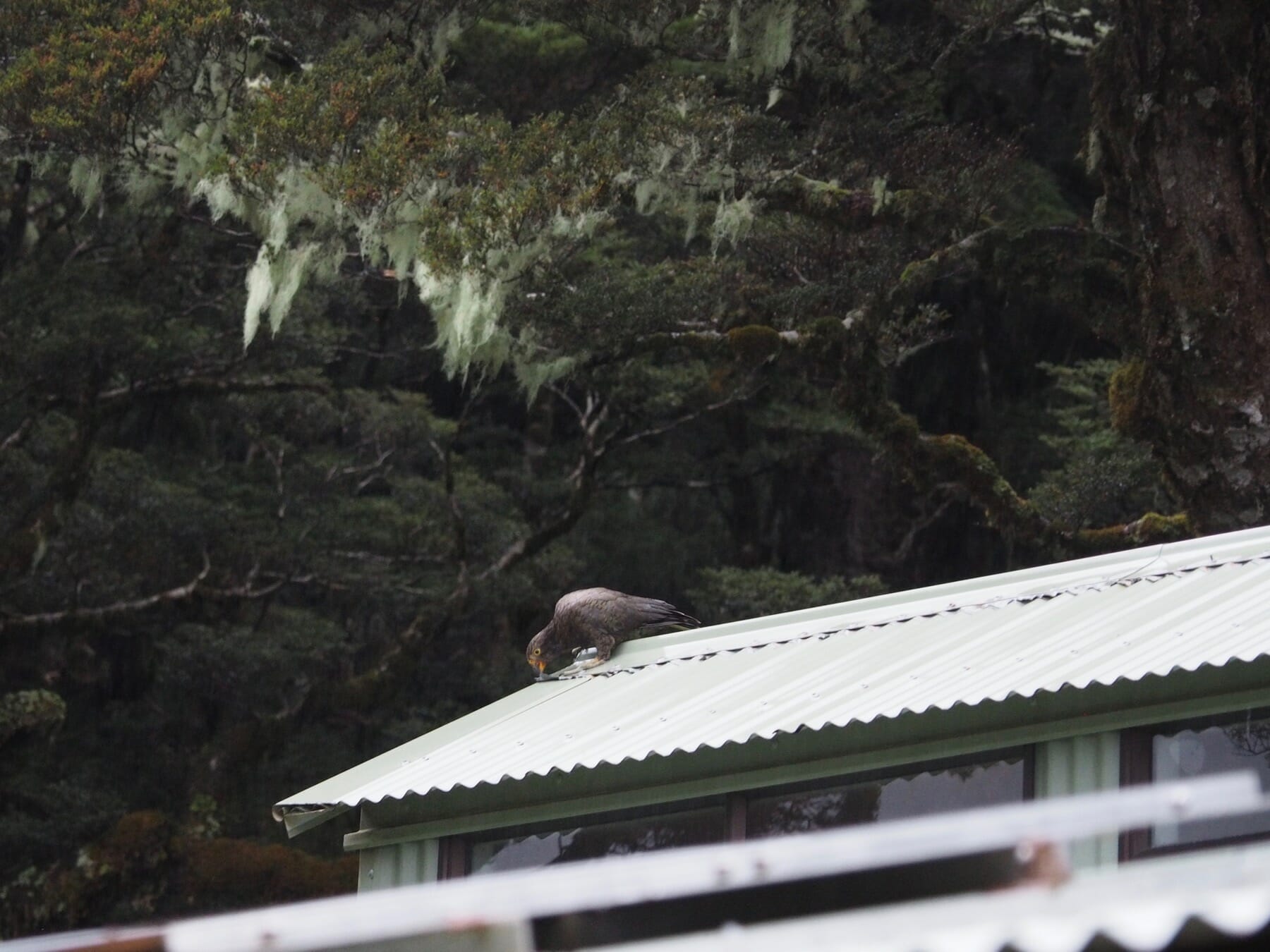 We checked in, changed into dry clothes, and made tea to warm up. While getting settled, we could hear kea or kaka clattering about on the metal roof, though we caught only limited glimpses of them that night.