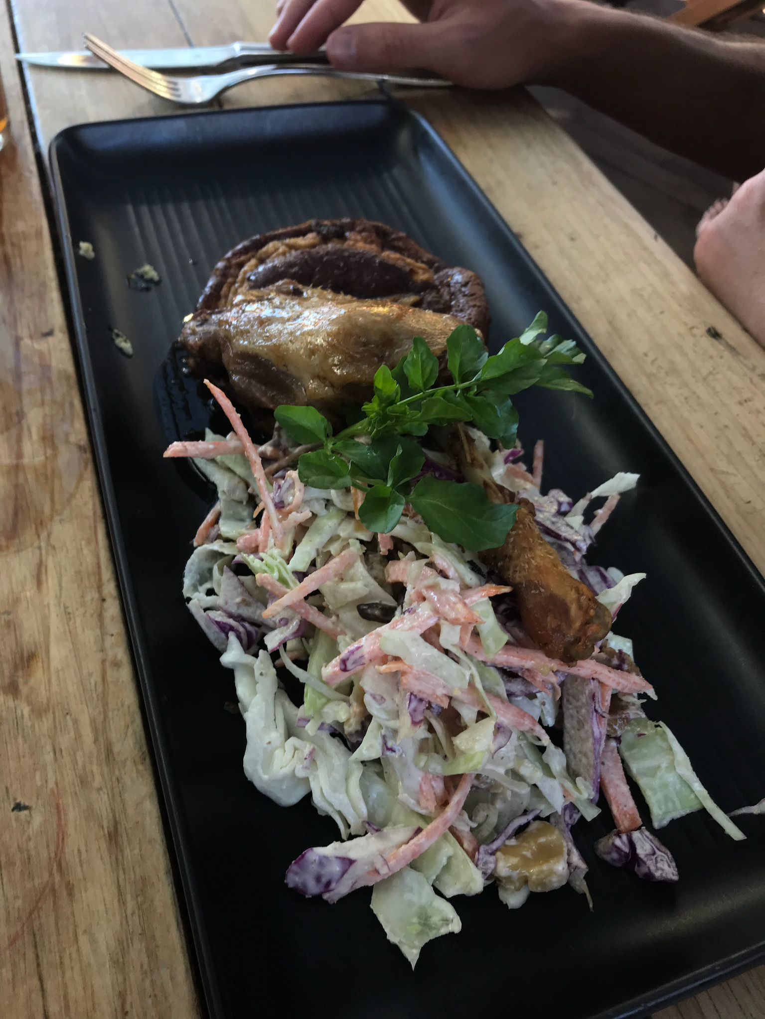 Back in town, we walked to the Redcliff Café for an early dinner. Unfortunately, we arrived just as power went out in town. They encouraged us to have some water and wait a bit, as they would need power to operate the kitchen. We had a reservation for the 7pm glowworm tour, so we started to get worried about whether we would be able to have dinner in time. Just as we thought we would have to give up and switch to somewhere faster, the power came back.