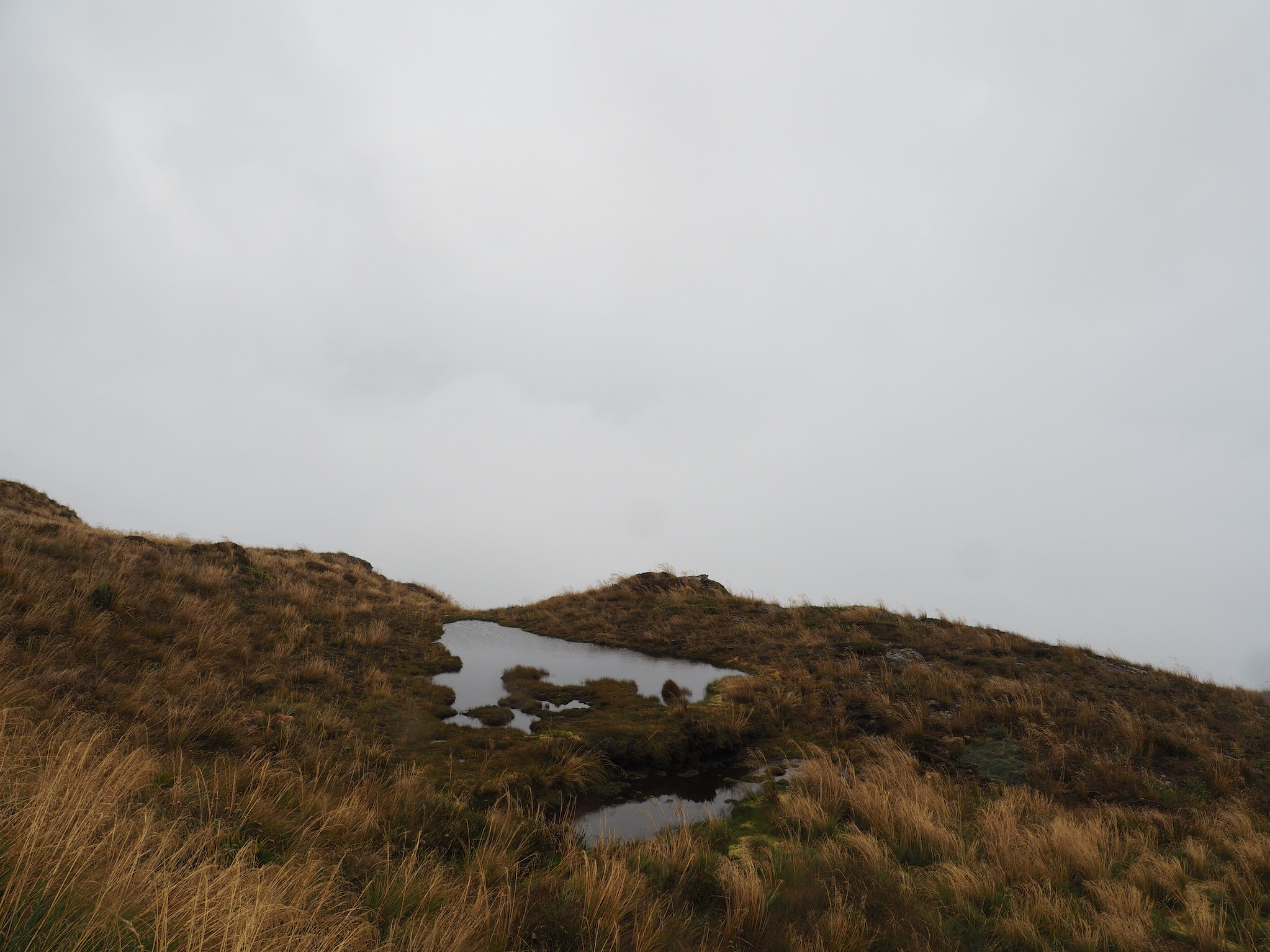 The weather had not improved by the time we reached the saddle, and so we skipped the hike up Conical Hill, as there would be no views.