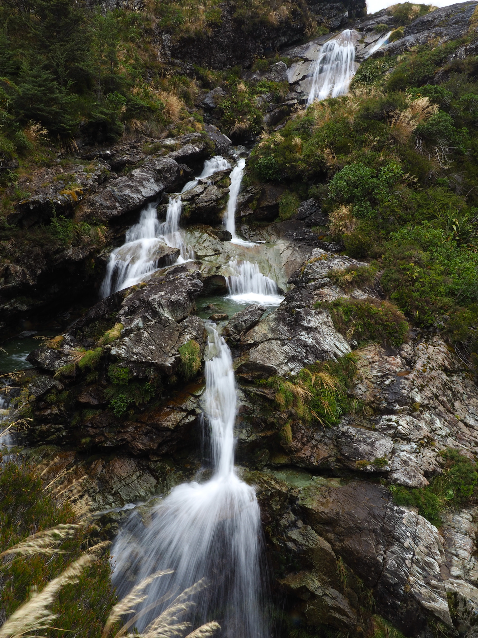 Continuing our descent, we reached our next stop, Routeburn Falls Hut, only a couple of hours after the saddle. This hut is in a stunning location, built essentially onto a cliff at the head of the Route Burn valley with stunning views.