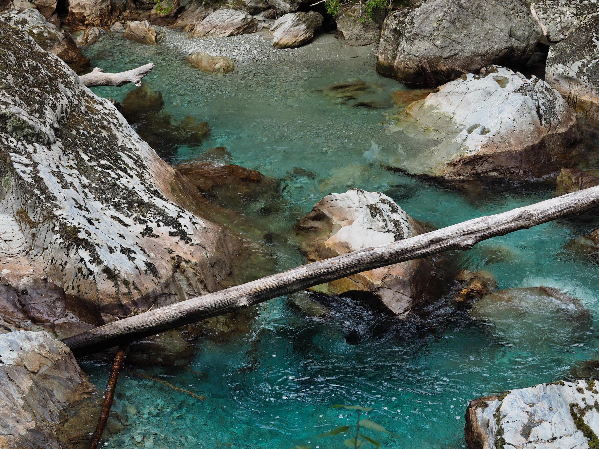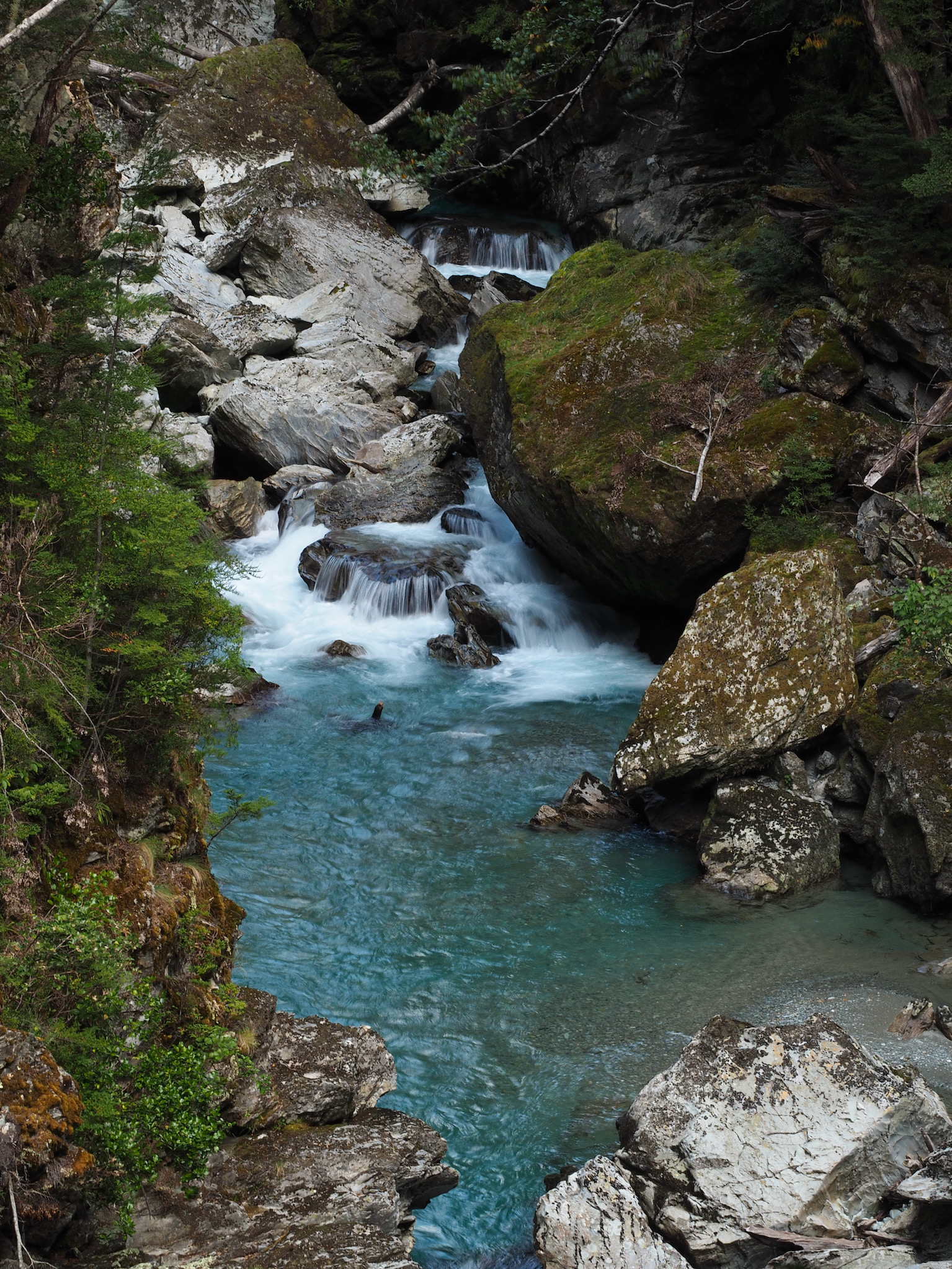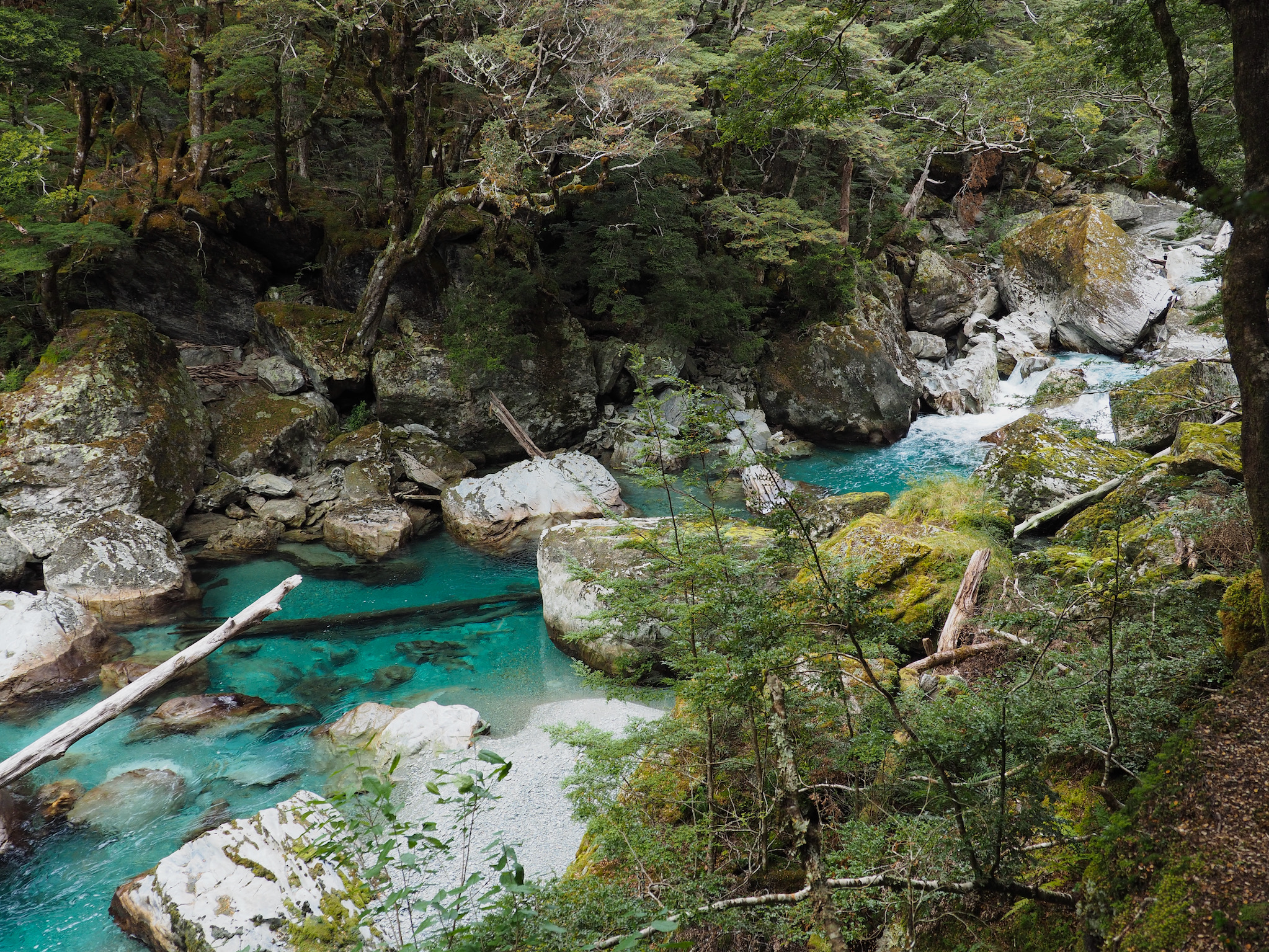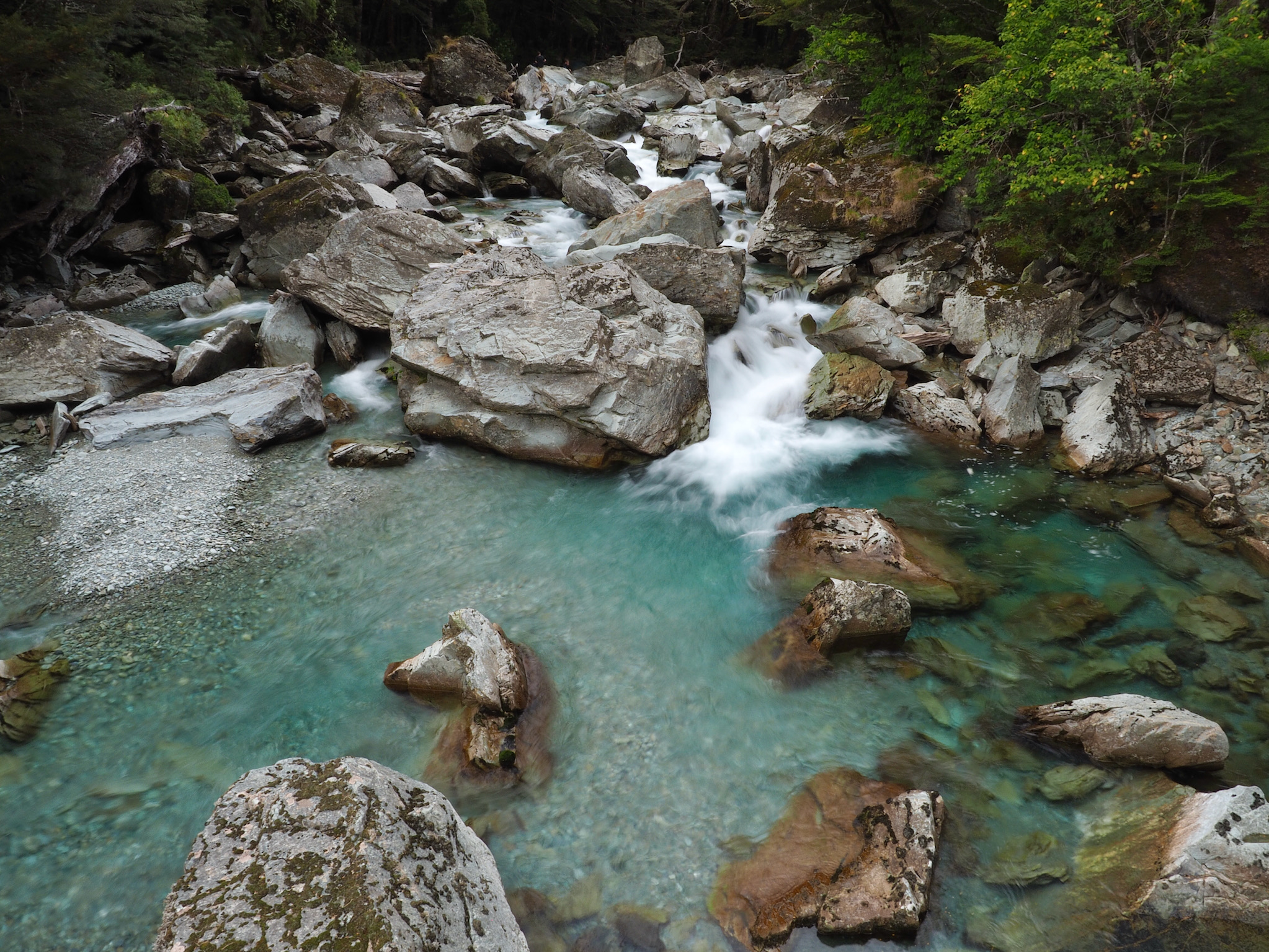 Below Routeburn Flats, the trail soon starts to run closer to the Route Burn. Its beautiful blue waters were our companion for the rest of the hike.