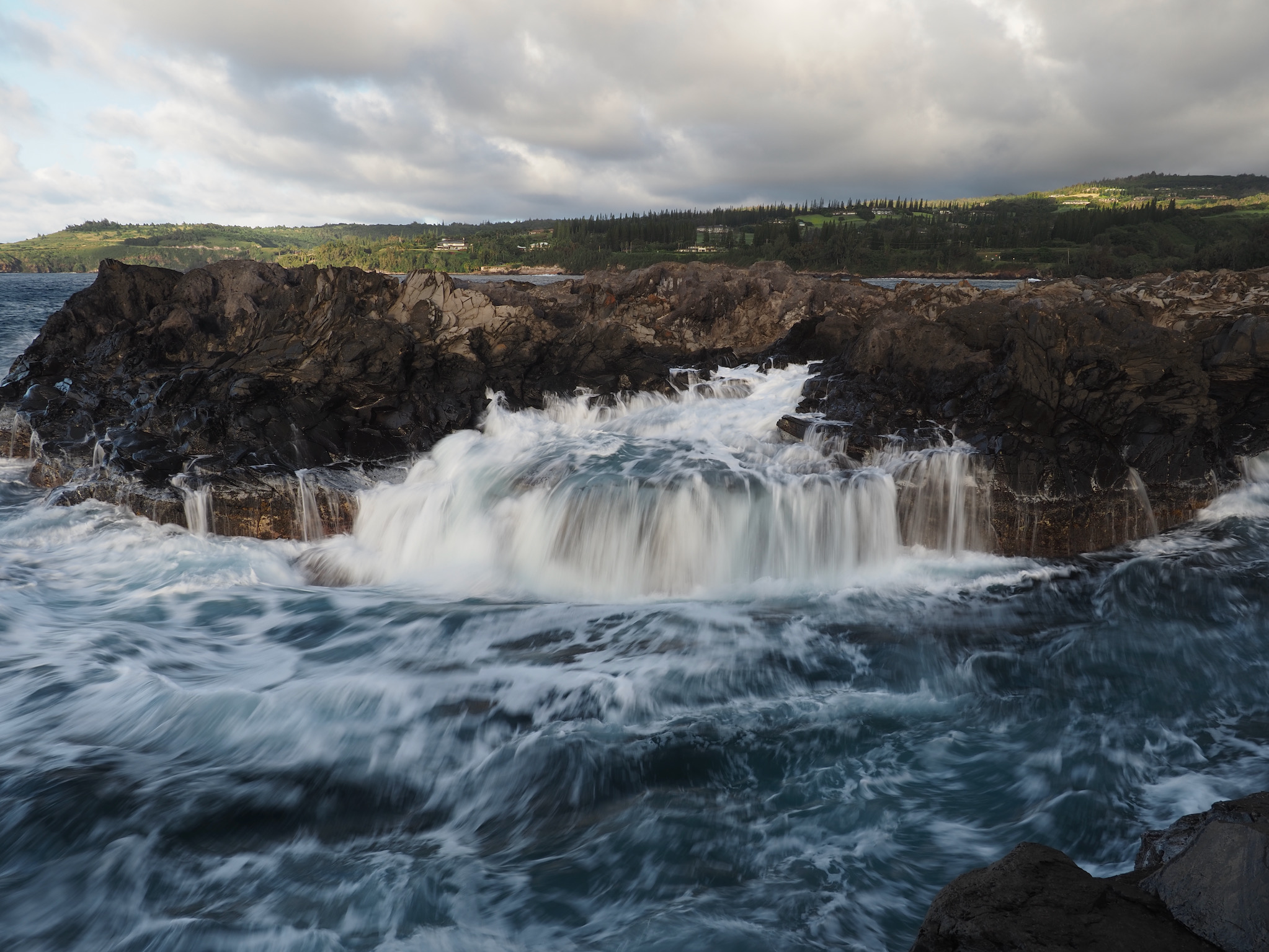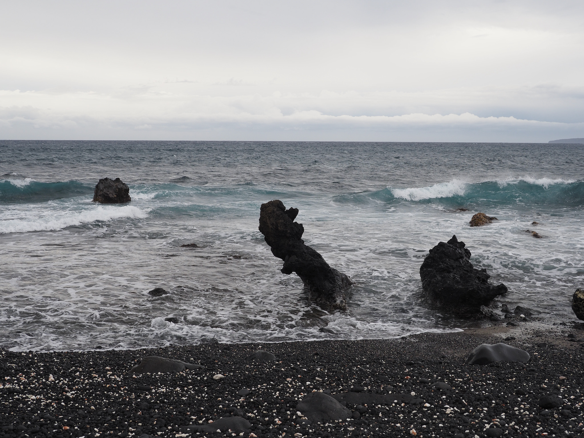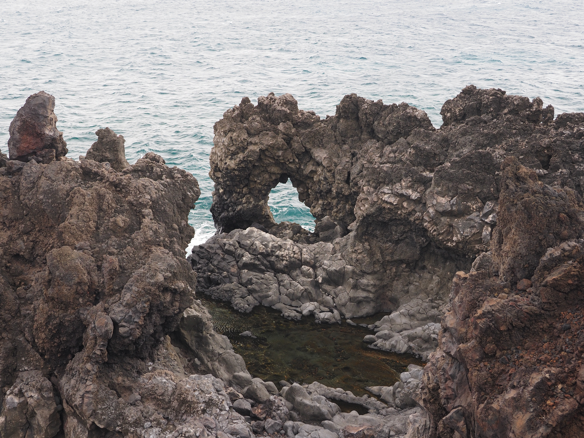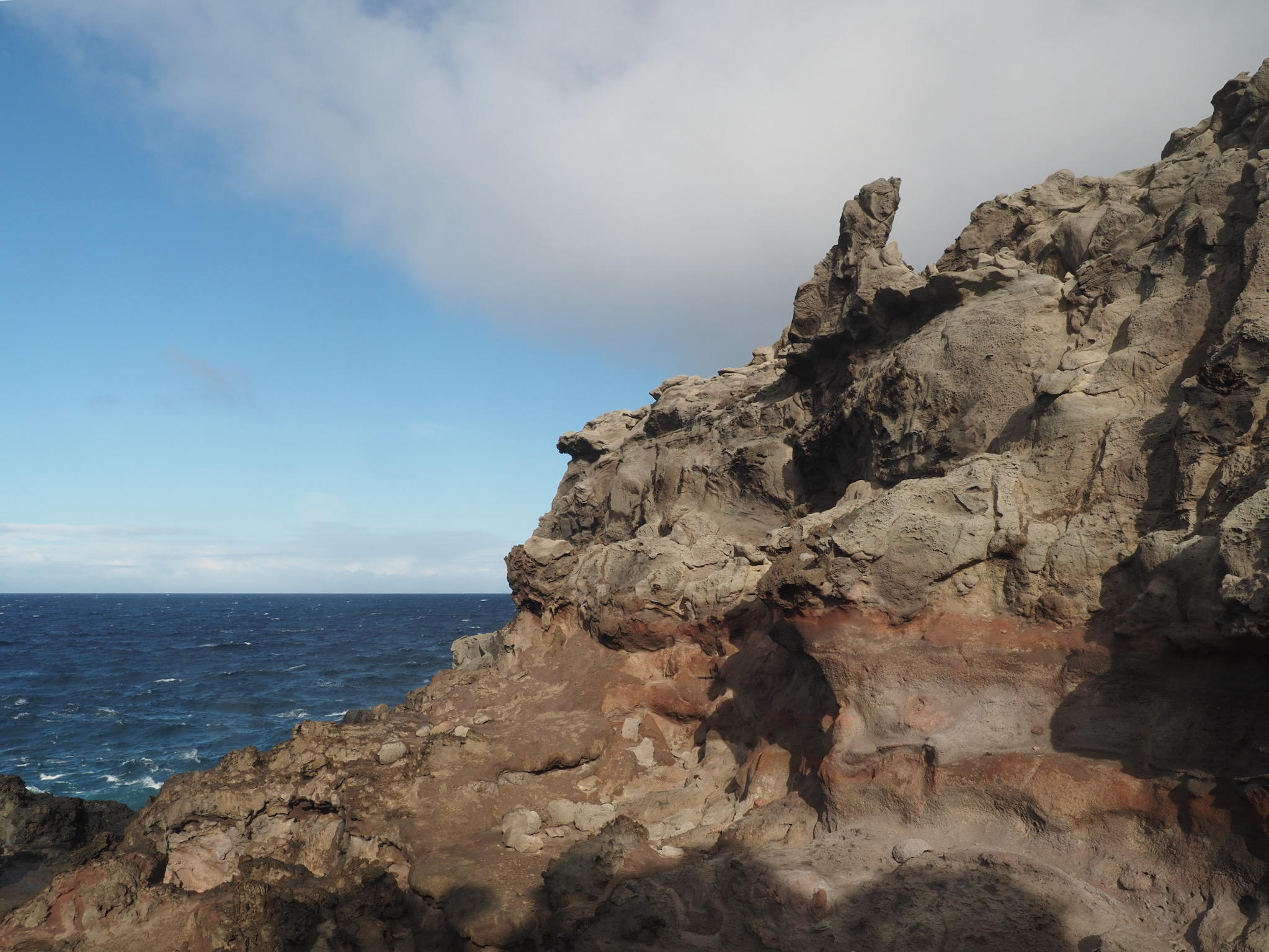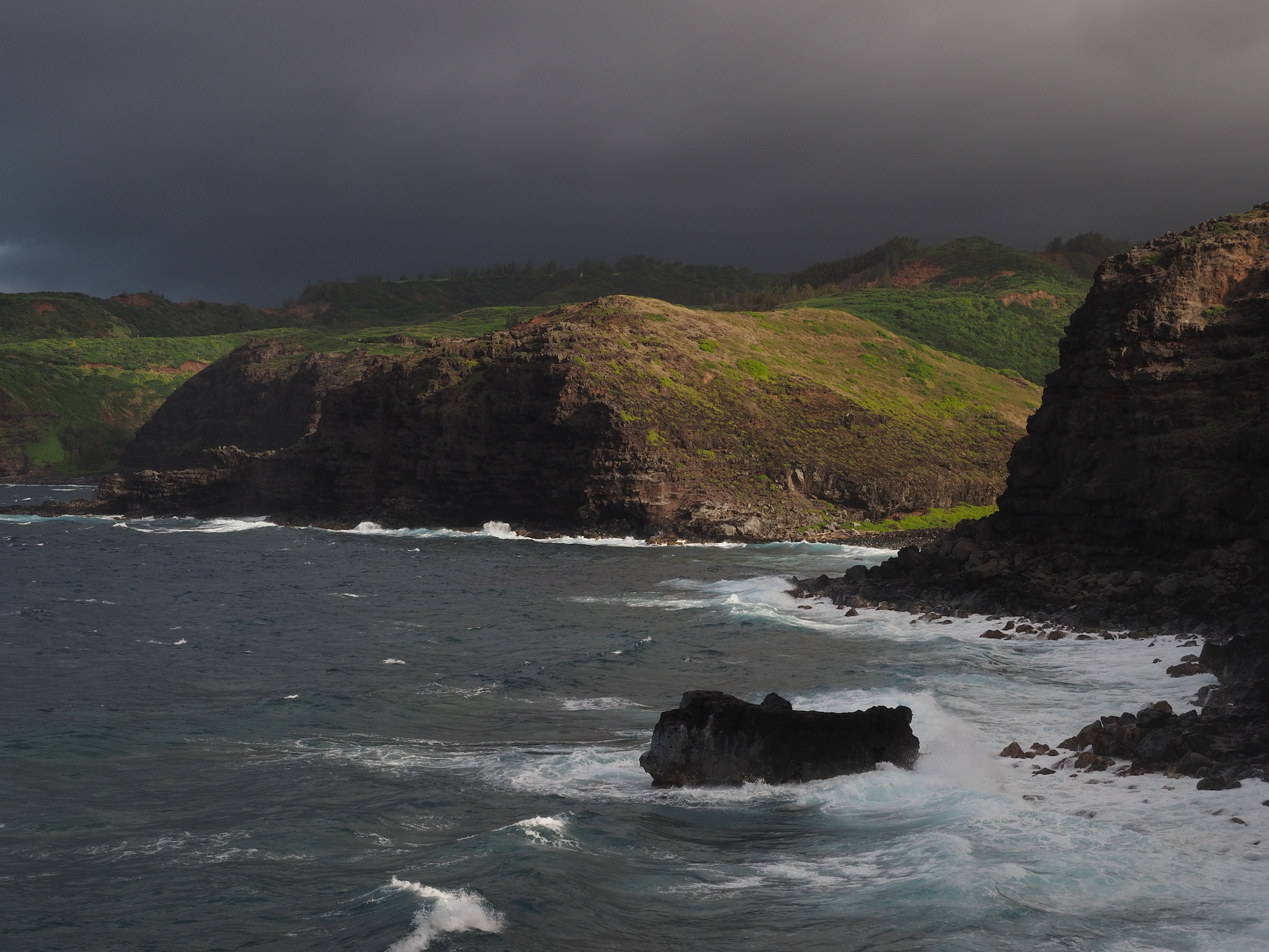 We then set out for the lava fields and La Perouse Bay, south of Kihei, for a hike. Our route took us along the bay to Maui’s youngest lava flows. We then followed the 16th-century King’s Highway inland, before turning back to the coast for Hanomanioa Light. We alternately could have continued along to Kanaio Beach, for a longer hike. From the light, we followed the coast back to the bay and our car. This area also had many unique rock formations, including blowholes or trumpets and some sea arches.