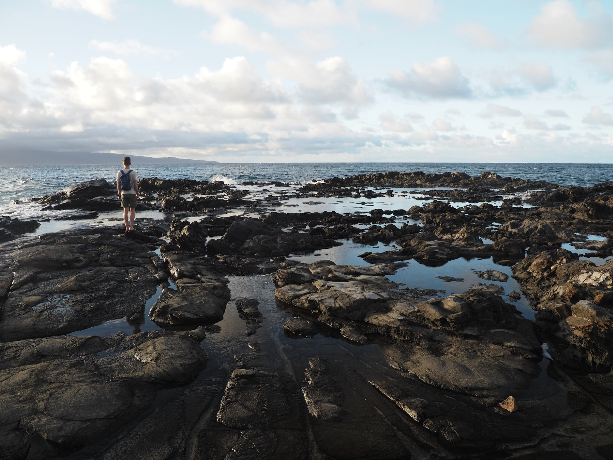 After eating, we walked down the short trail to Dragon’s Teeth, or Makaluapuna Point. Here, an old lava flow has been shaped by the wind and water into a ridge of “teeth.” In addition to the geology, we enjoyed poking around at the tide pools. Before we left, we caught a lovely sunset.