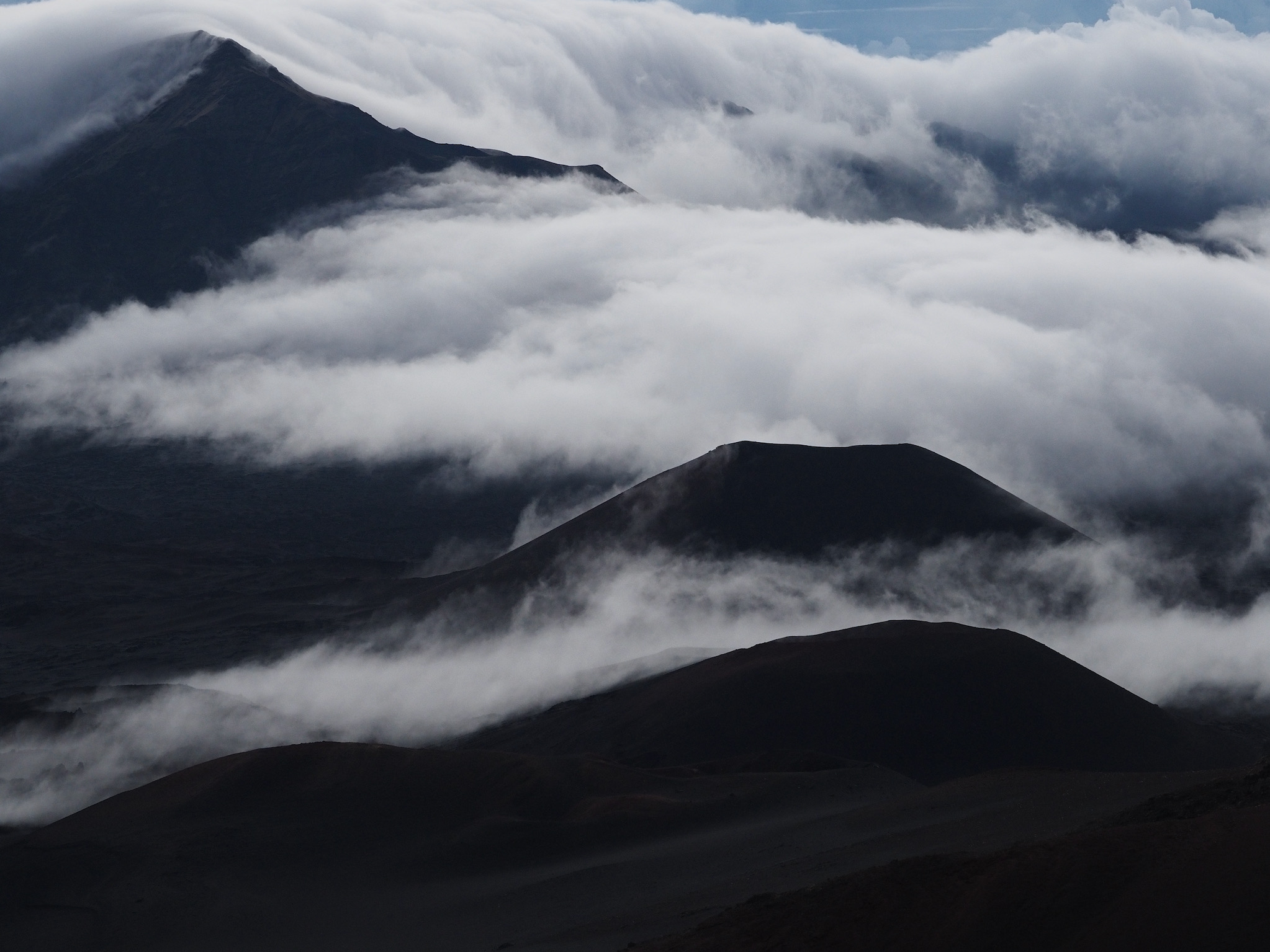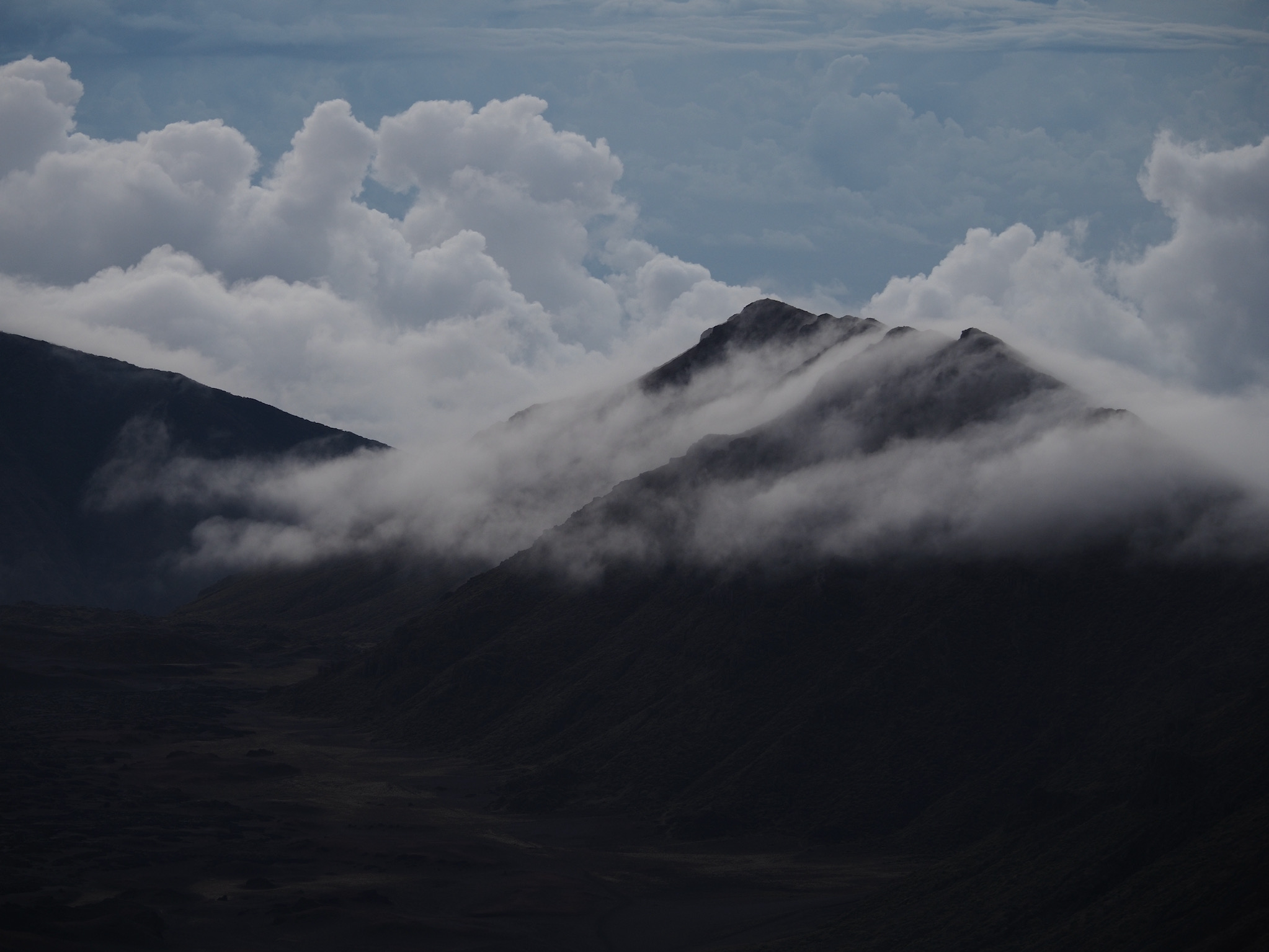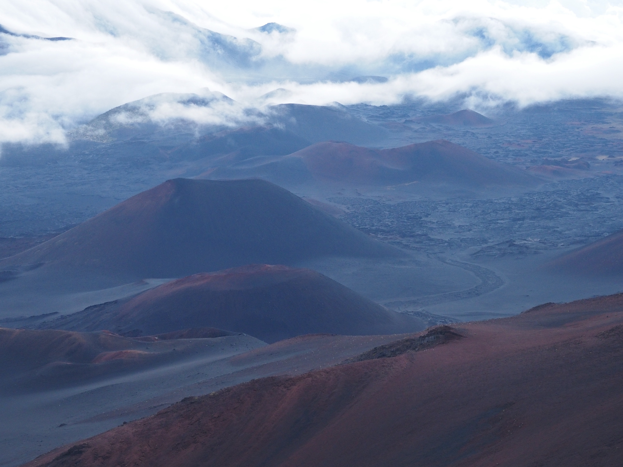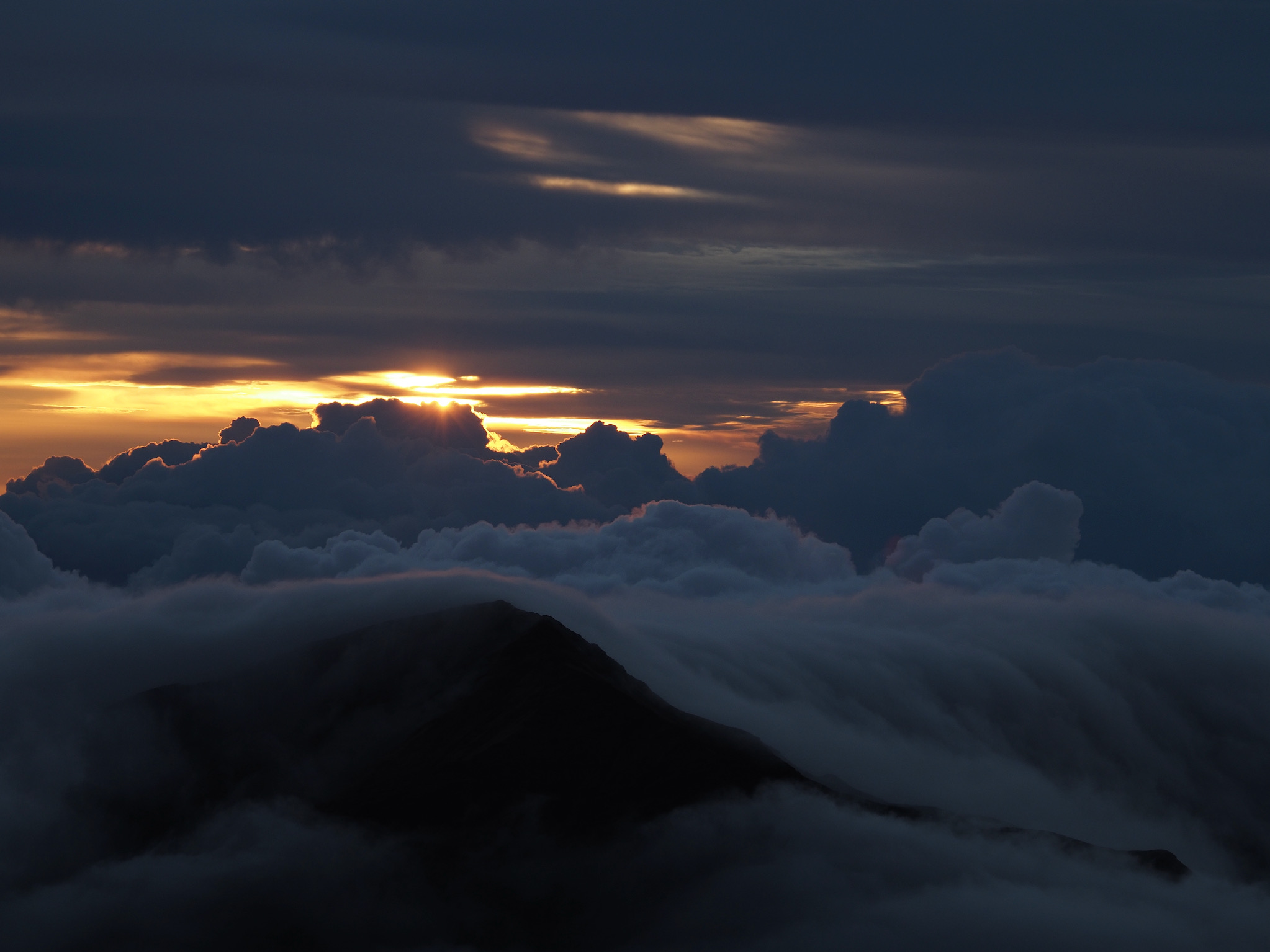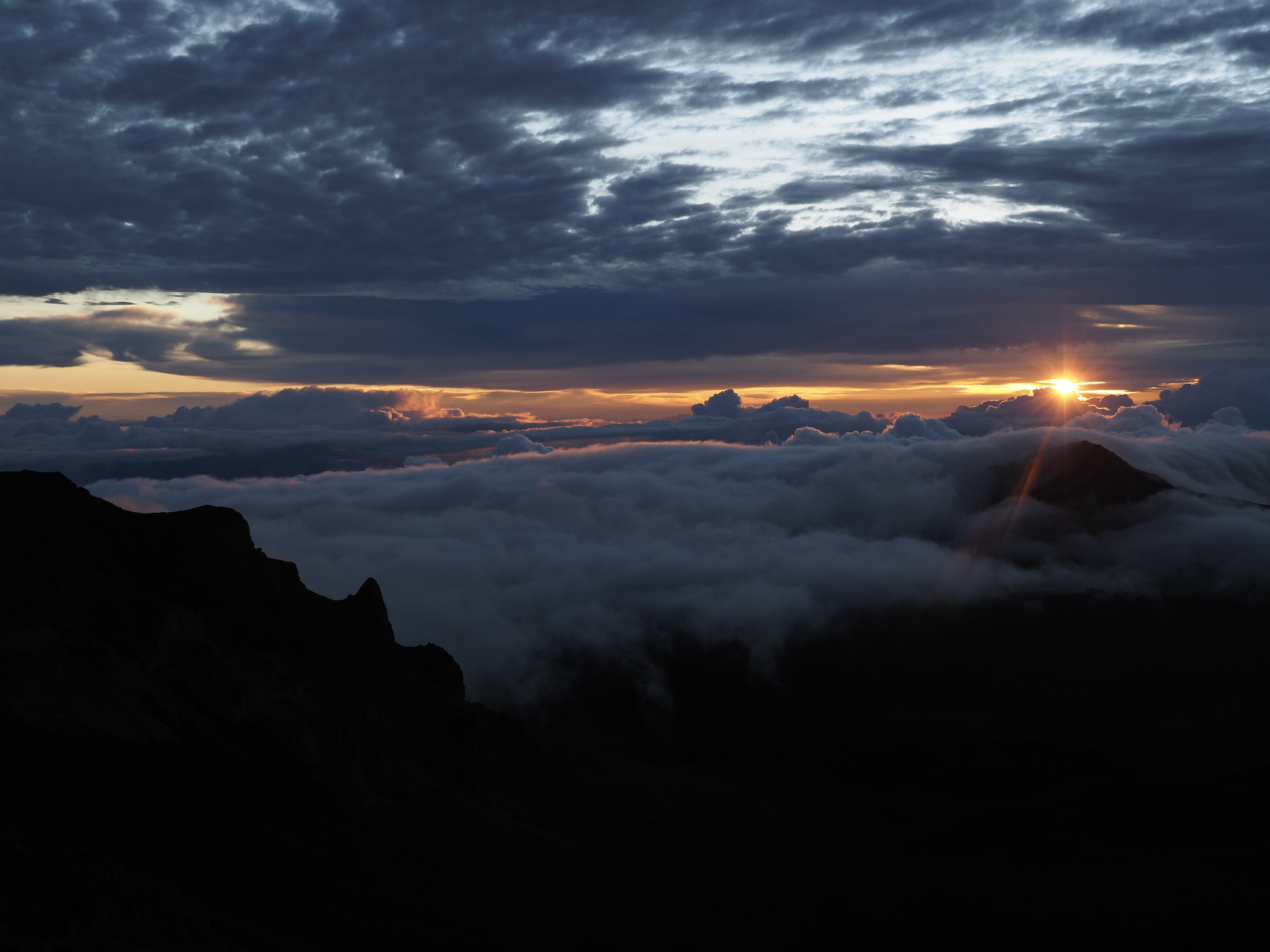 While the drive from Kula to the summit had been short, the drive from Kihei to the summit was closer to 90 minutes. That meant we had to leave by 4am to have some margin for error for a 5:52am sunrise. We made it with plenty of time to spare and enjoyed the lovely sunrise as clouds drifted in through the gaps in the mountains.