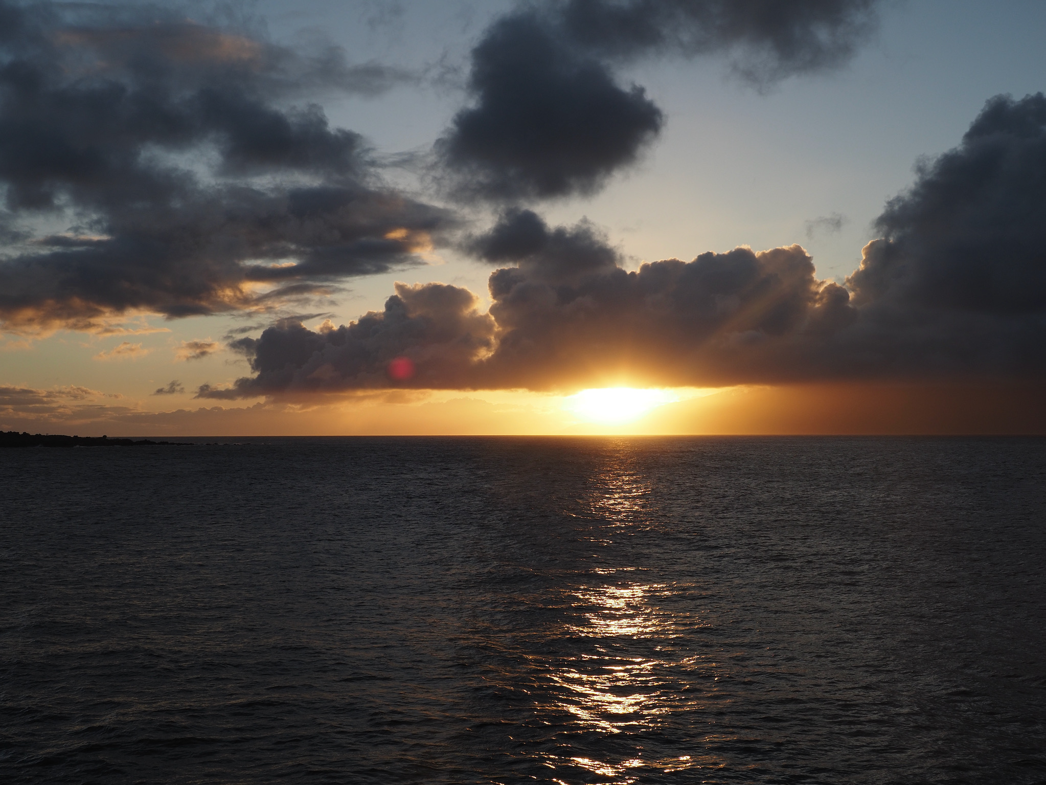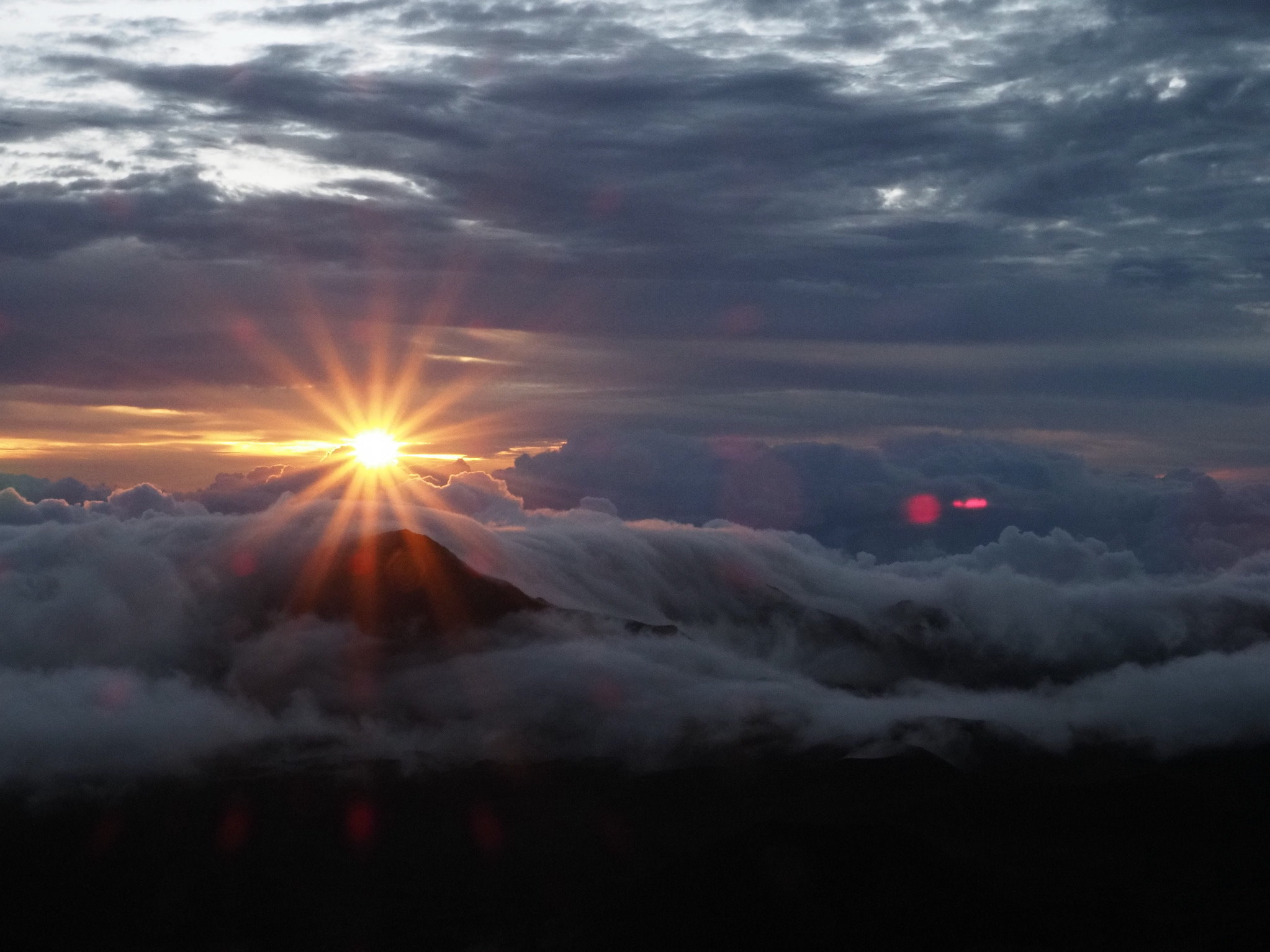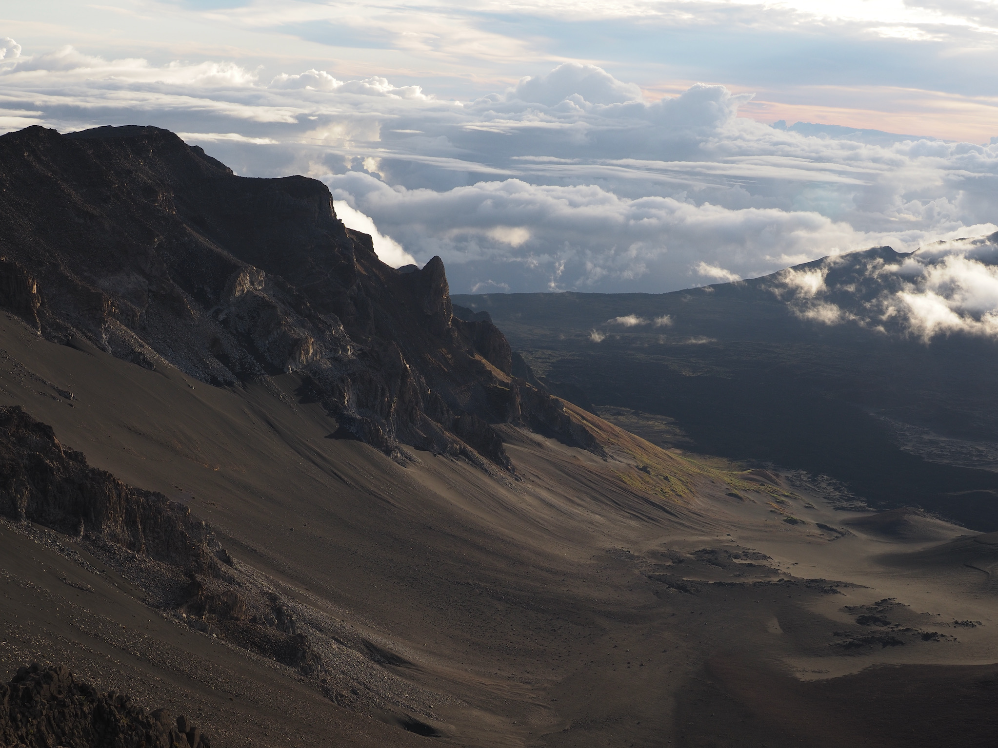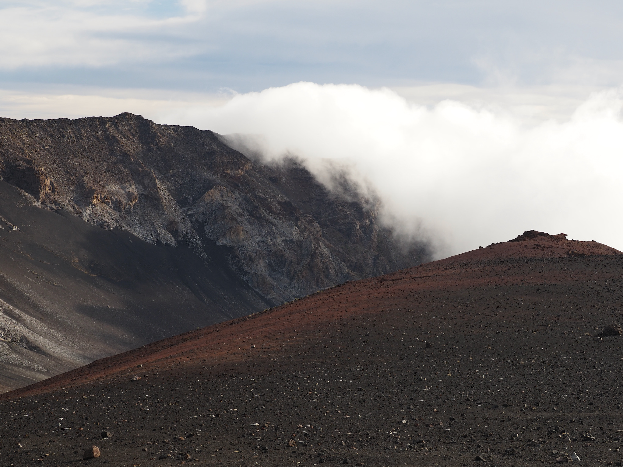 While the drive from Kula to the summit had been short, the drive from Kihei to the summit was closer to 90 minutes. That meant we had to leave by 4am to have some margin for error for a 5:52am sunrise. We made it with plenty of time to spare and enjoyed the lovely sunrise as clouds drifted in through the gaps in the mountains.