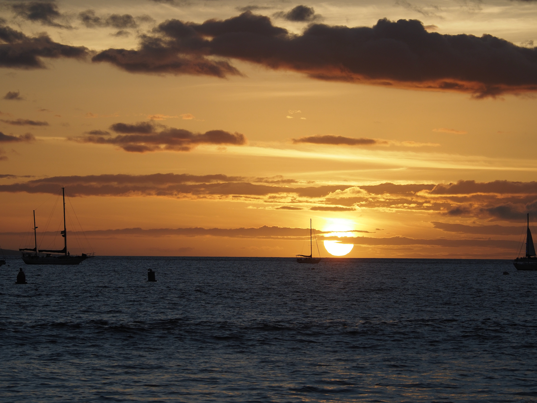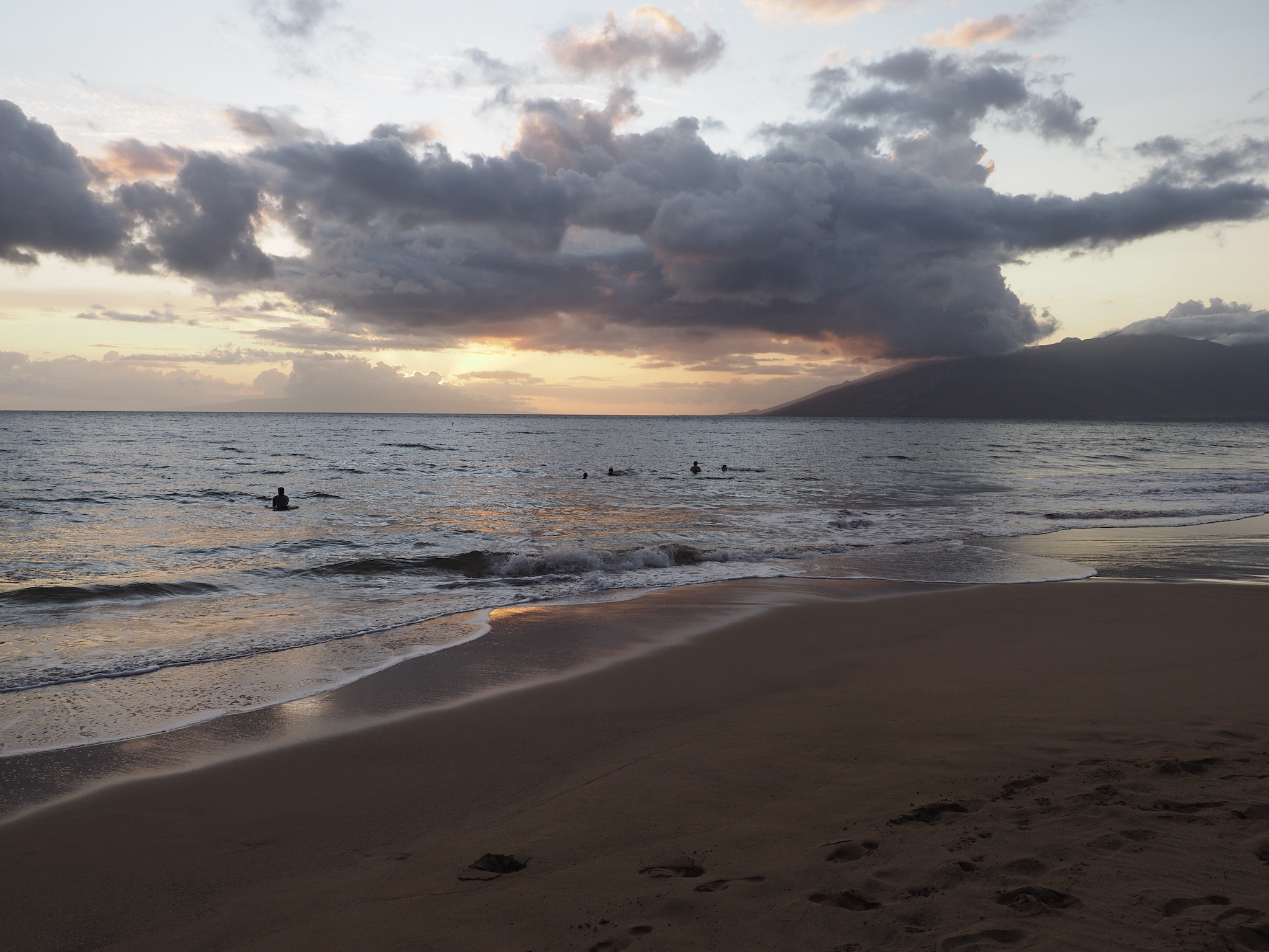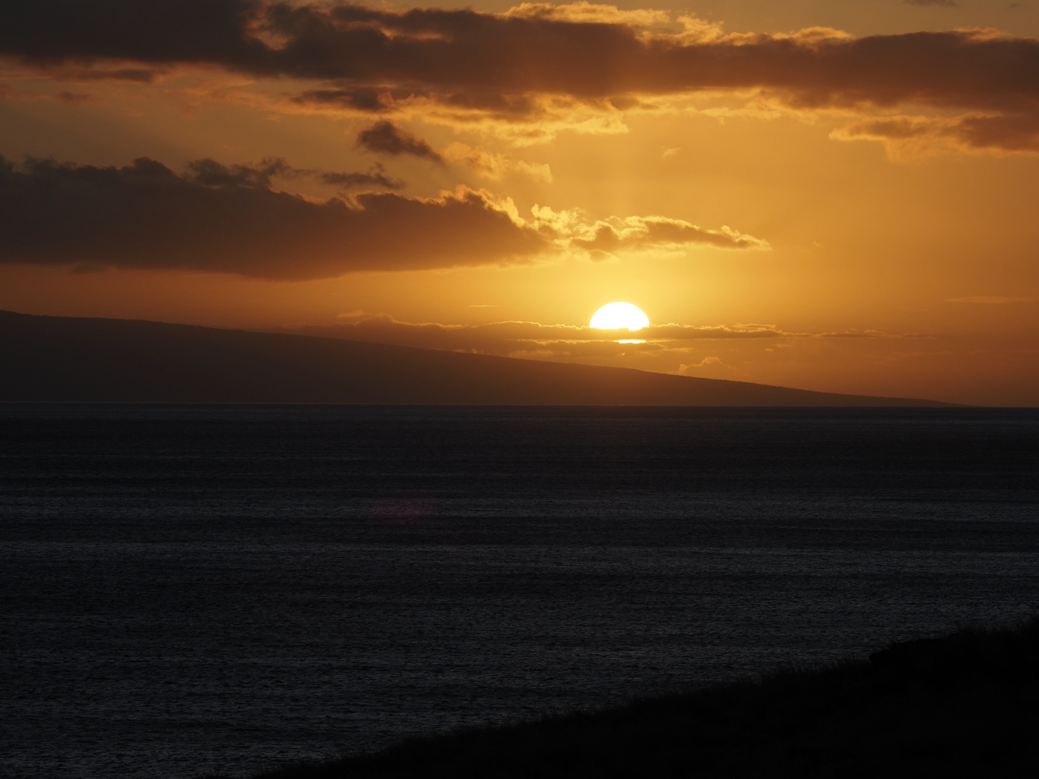 After leaving Kihei, we drove to Launiupoko Beach Park, where we alternated between strolling along the water to watch turtles and crabs and reading in the shade. As sunset approached, we drove to Papawai Lookout to watch. Though there were no whales, sunset was still stunning. Once the sun had set, it was time to return the rental car and fly home.