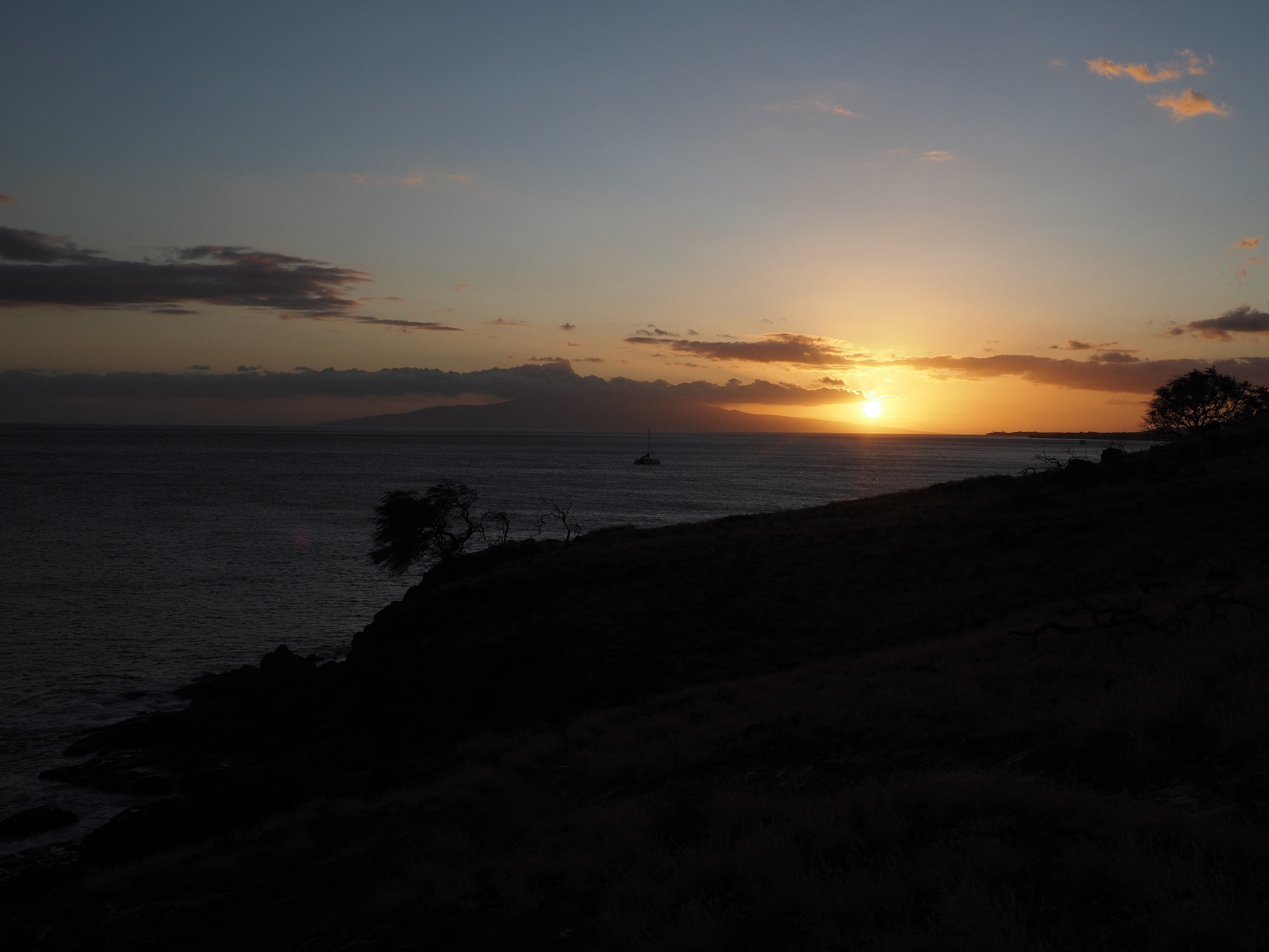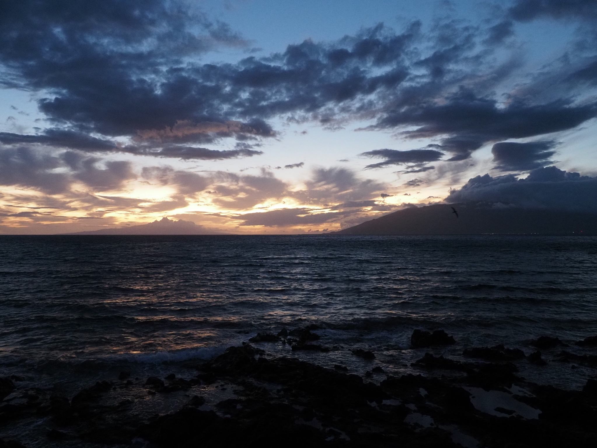 After breakfast, we lazily read for a while. In late afternoon, we set out for the Kapalua Coastal Trail for sunset. This made for a nice walk. On our return, we heard what sounded like a baby crying in the sand. We investigated, and found that wedge-tailed shearwaters (ʻUaʻu kani, seabirds in the petrel family) were making the sounds from their burrows. As we listened, others flew in from the ocean, returning home for the night. The sight was a combination of impressive and awkward, and the sounds–even though we now knew their source–remained unsettling but also humorous.