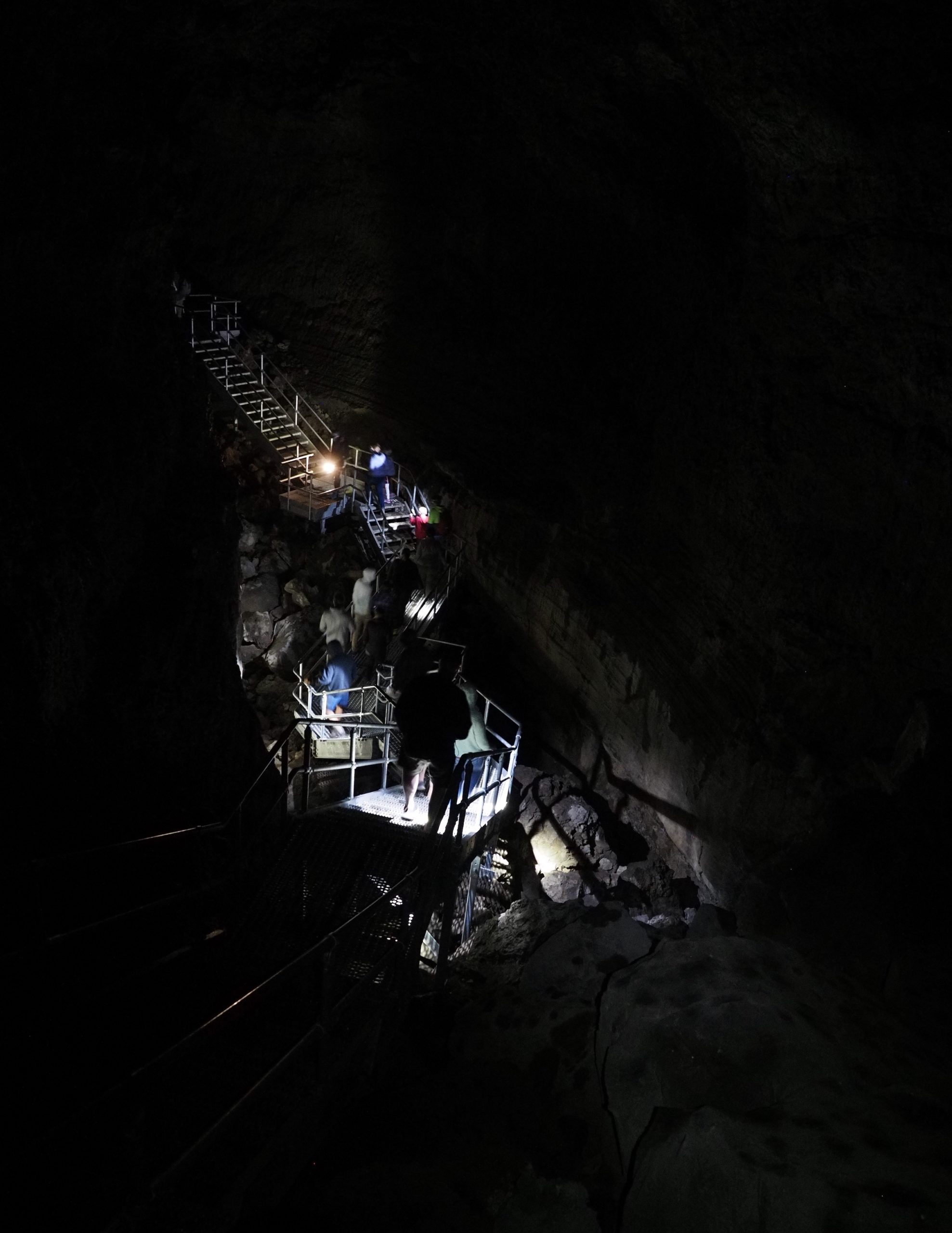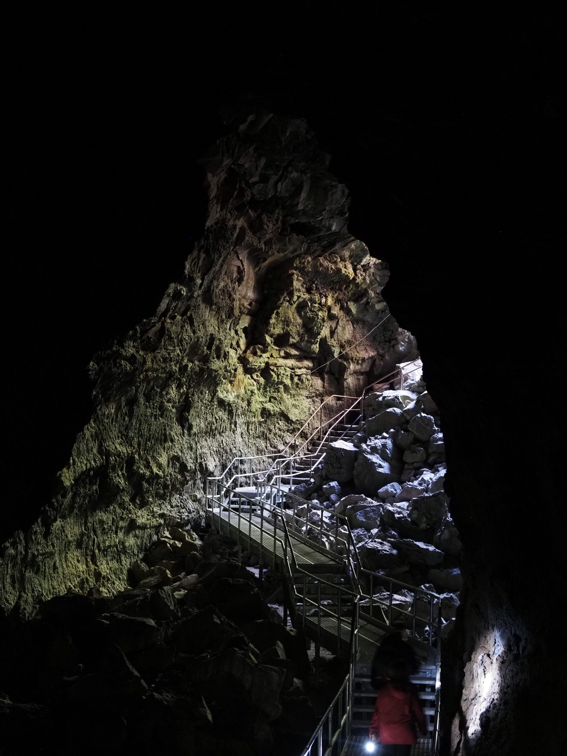 After our stop at the visitor center, we drove just a few minutes further to Lava River Cave. After a short orientation and safety talk, visitors can explore about mile of this lava tube (1.1 miles). We arrived a few minutes before they opened for the day, and so we were in the first group through.