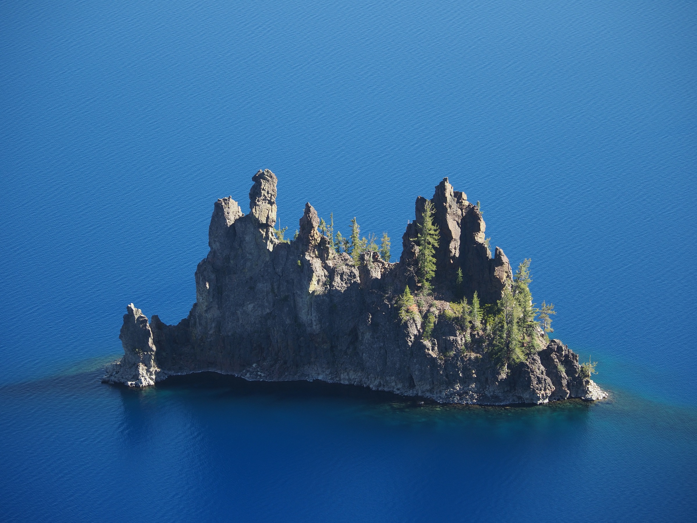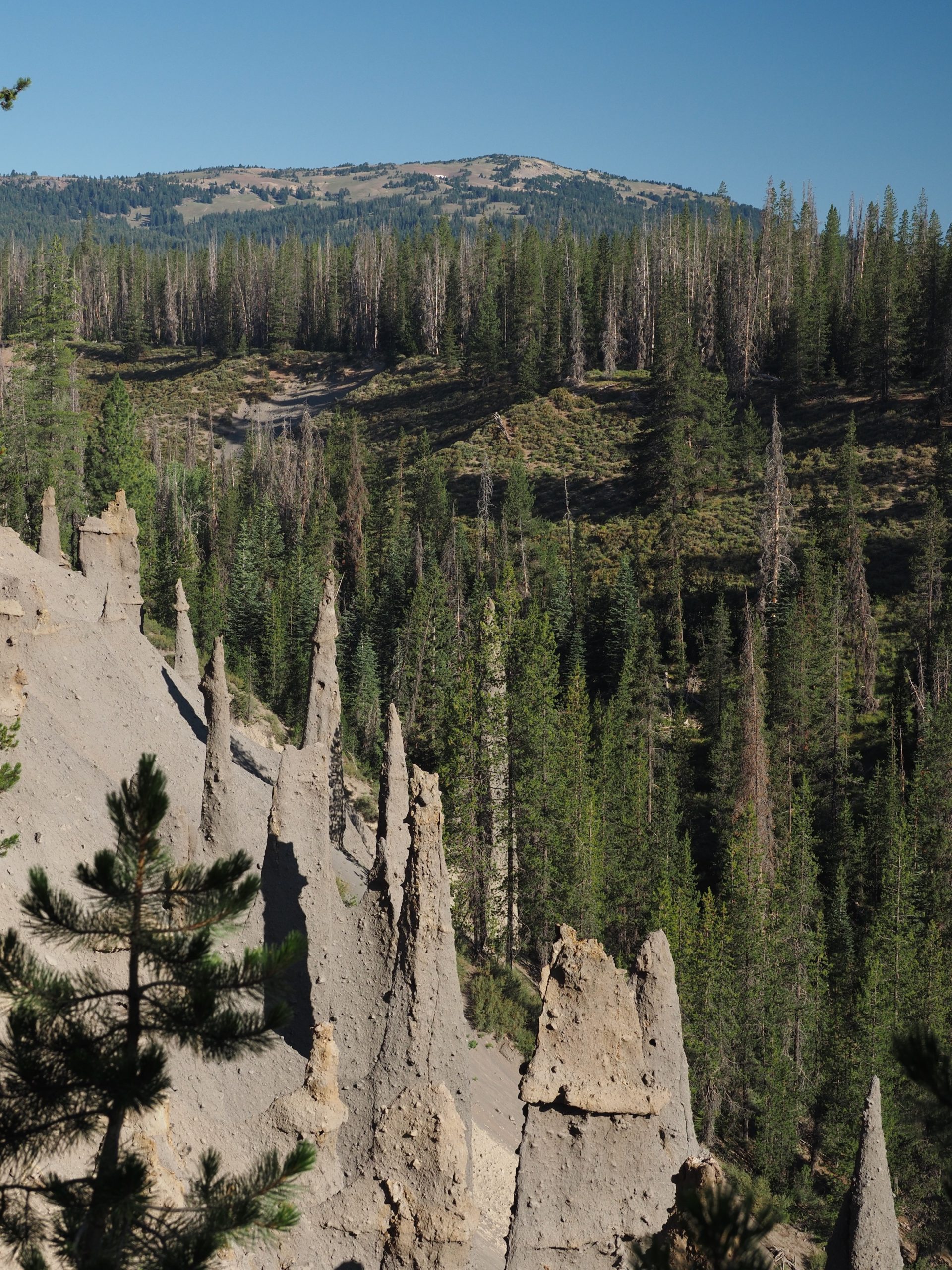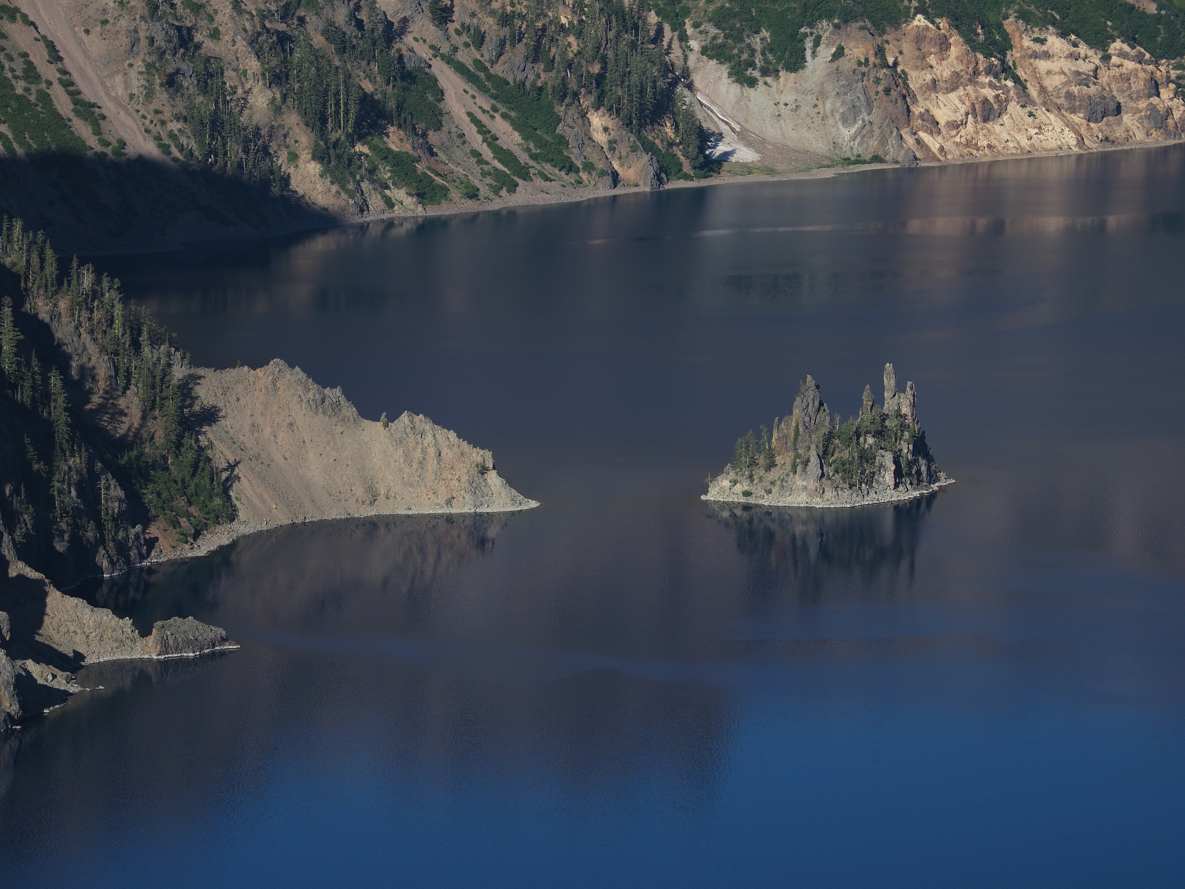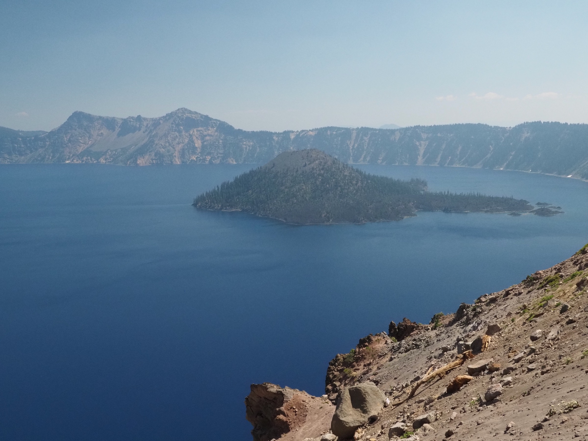 From there, we drove back up the crater rim and on to Sun Notch Trail. This 0.8 mile loop gave us one last, beautiful look at Crater Lake, including excellent views down to the Phantom Ship formation, before we left the park to continue our trip to California.