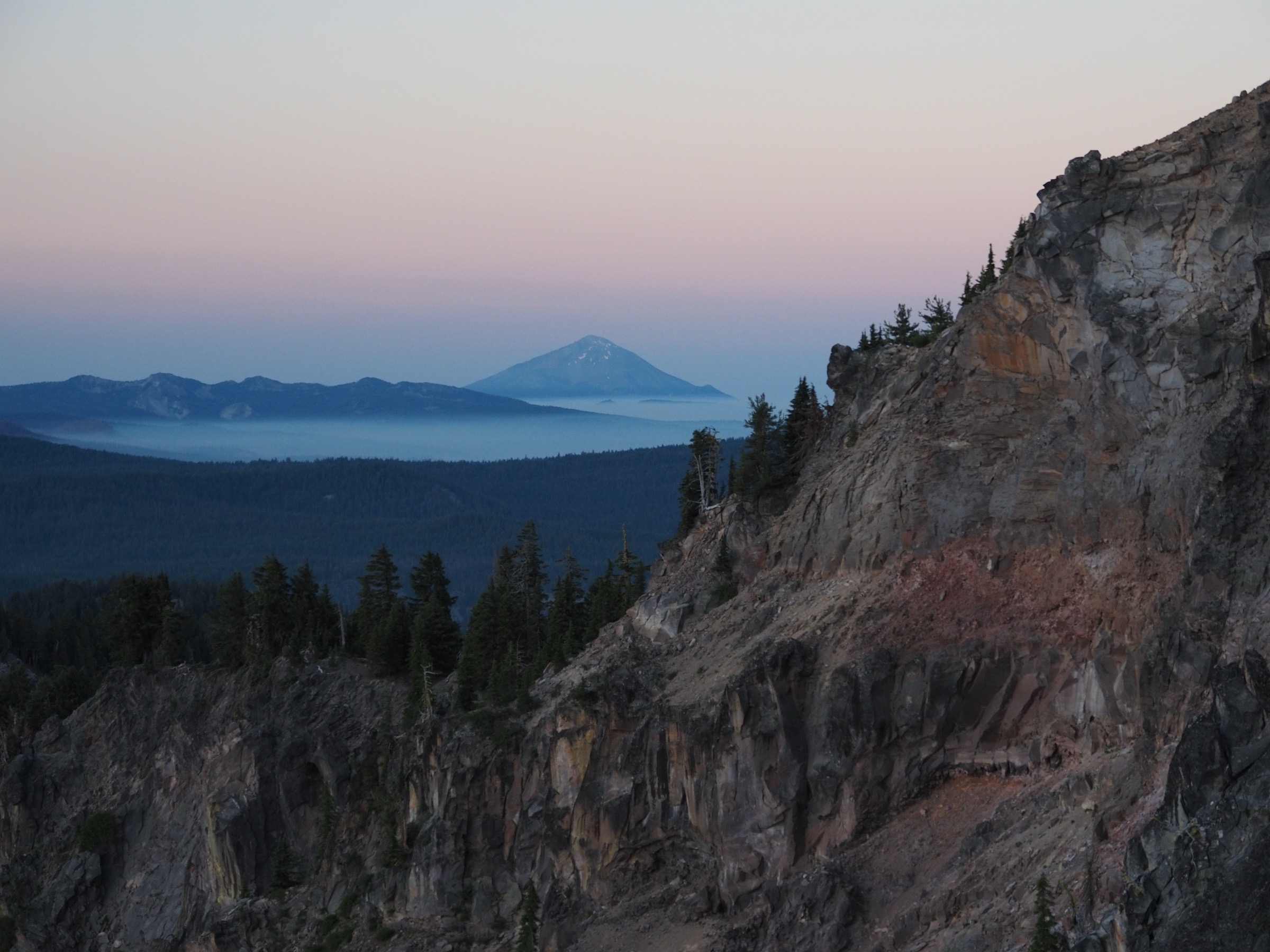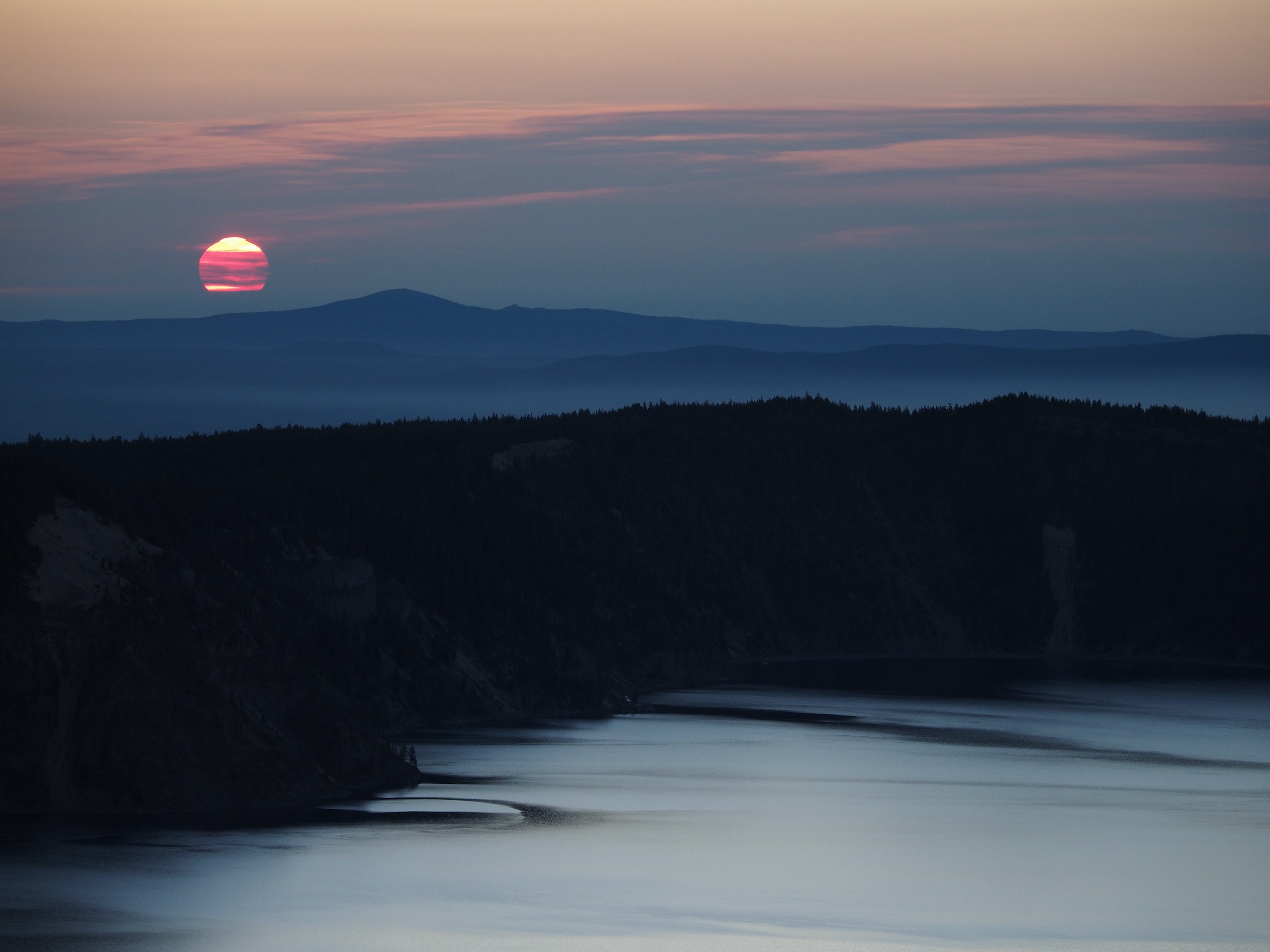 After dinner, we drove back up to the rim for dusk and sunset views. We first walked around Rim Village for a bit, before driving over to Cloudcap Overlook for sunset. While the smoke limited our views, it made for a colorful end to the day.