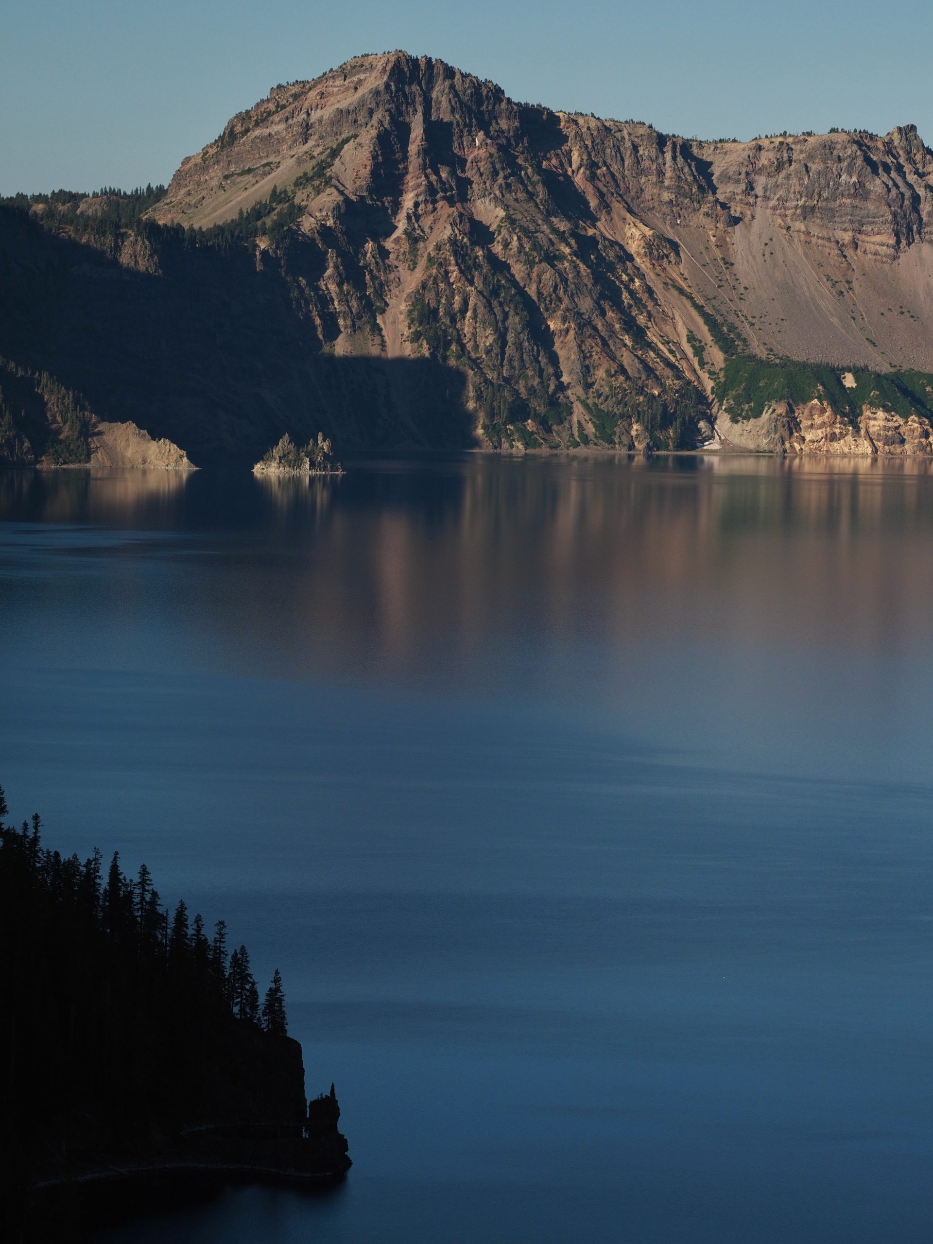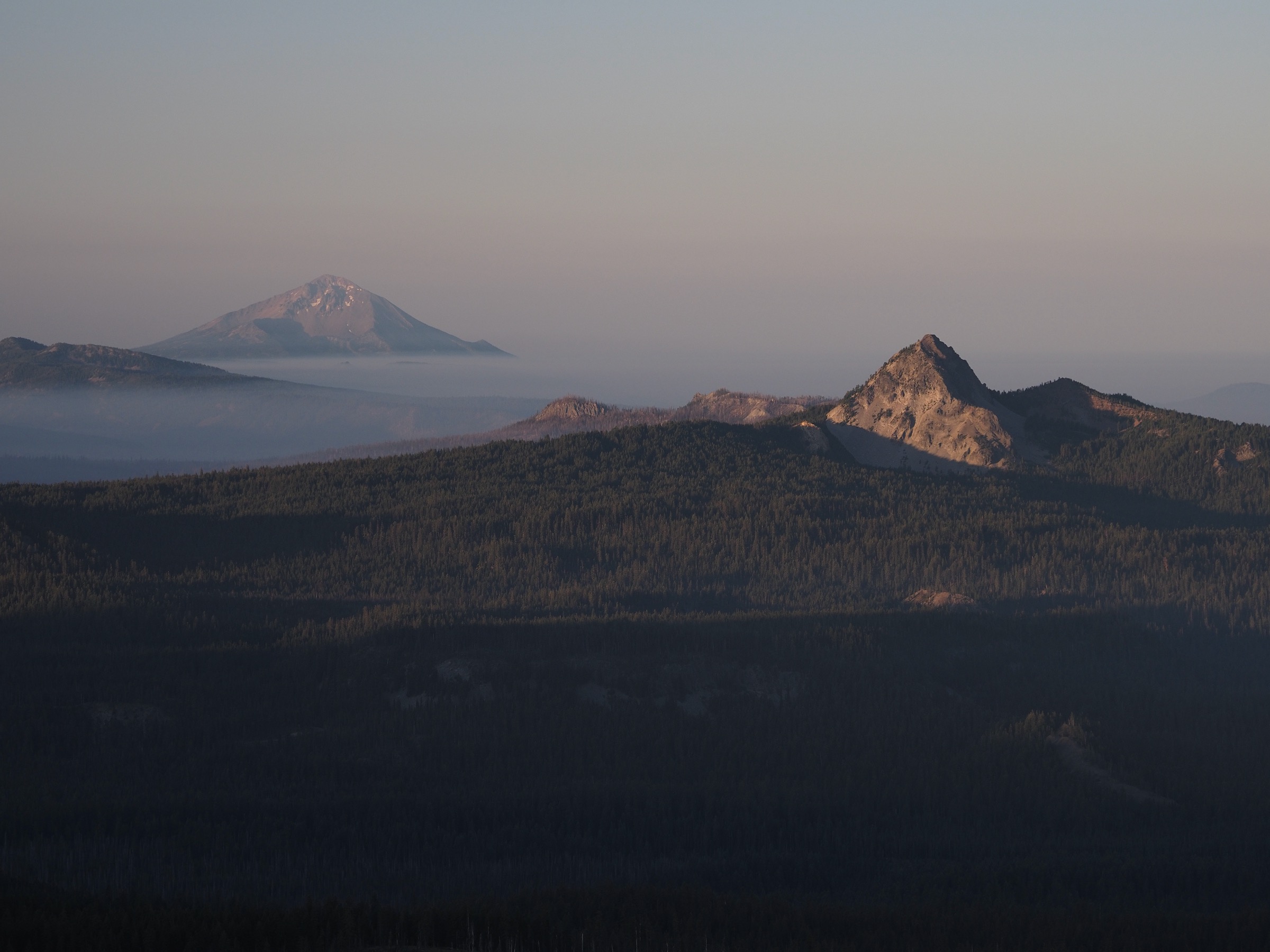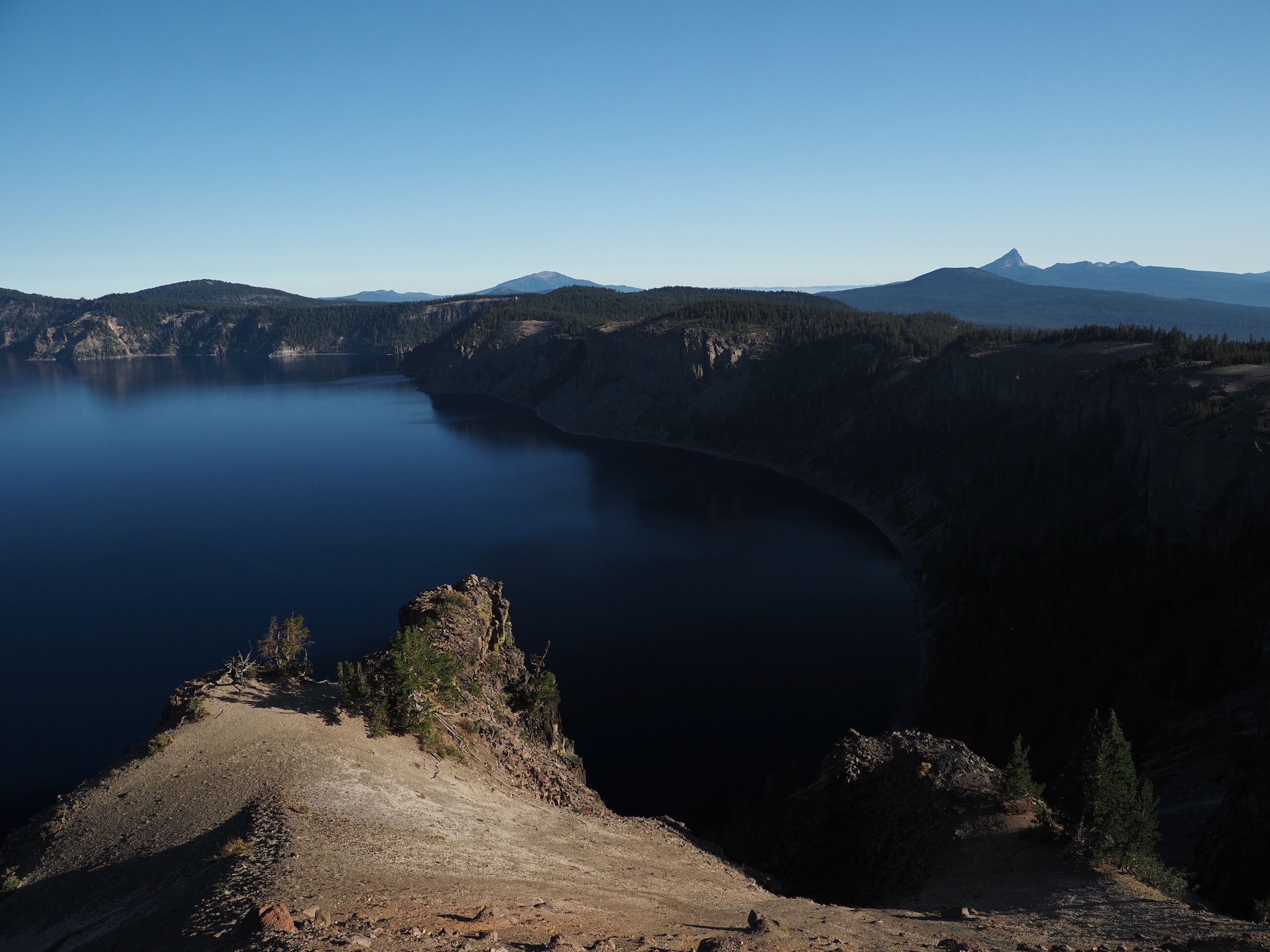 I was glad we did. I particularly enjoyed some of the viewpoints looking away from the lake, north toward Diamond Peak and the Sisters area, in the golden morning light. The clear weather tempted us to consider the 5 mile, 1300′ hike up Mount Scott. With a long drive ahead of us, though, we decided we should not.