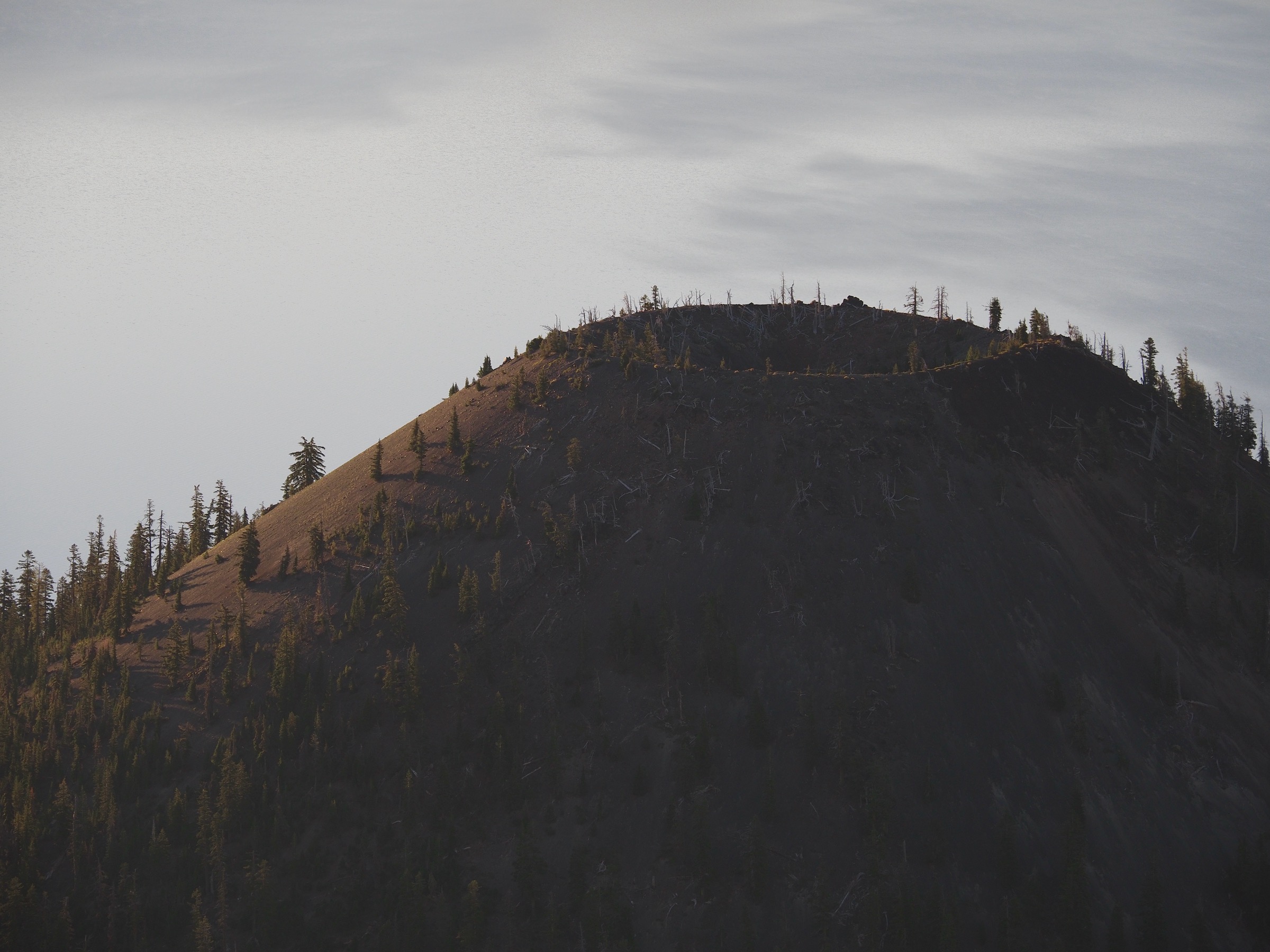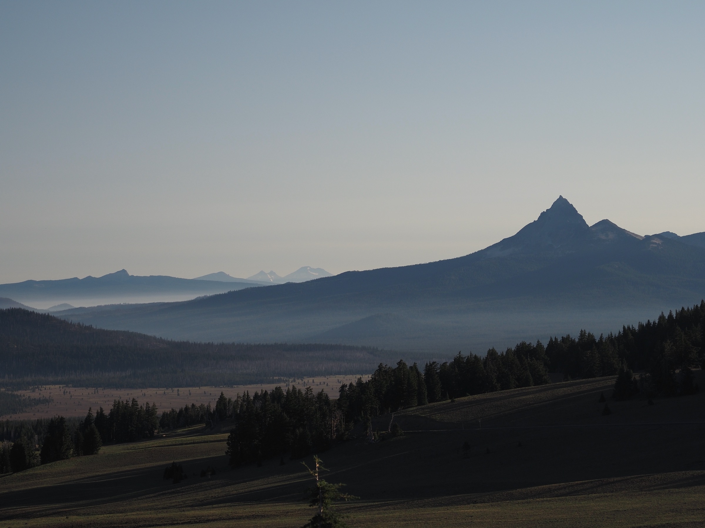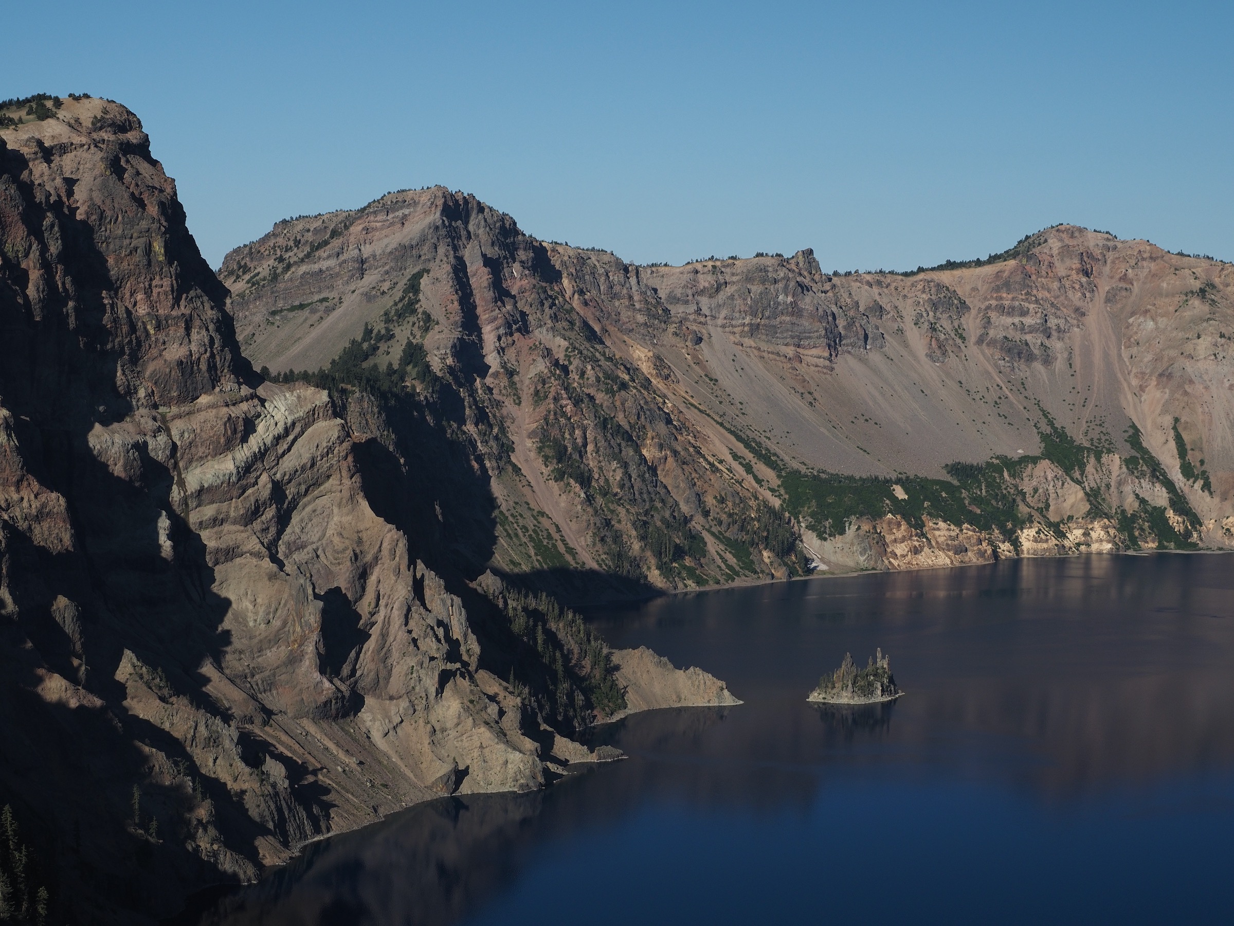 I was glad we did. I particularly enjoyed some of the viewpoints looking away from the lake, north toward Diamond Peak and the Sisters area, in the golden morning light. The clear weather tempted us to consider the 5 mile, 1300′ hike up Mount Scott. With a long drive ahead of us, though, we decided we should not.