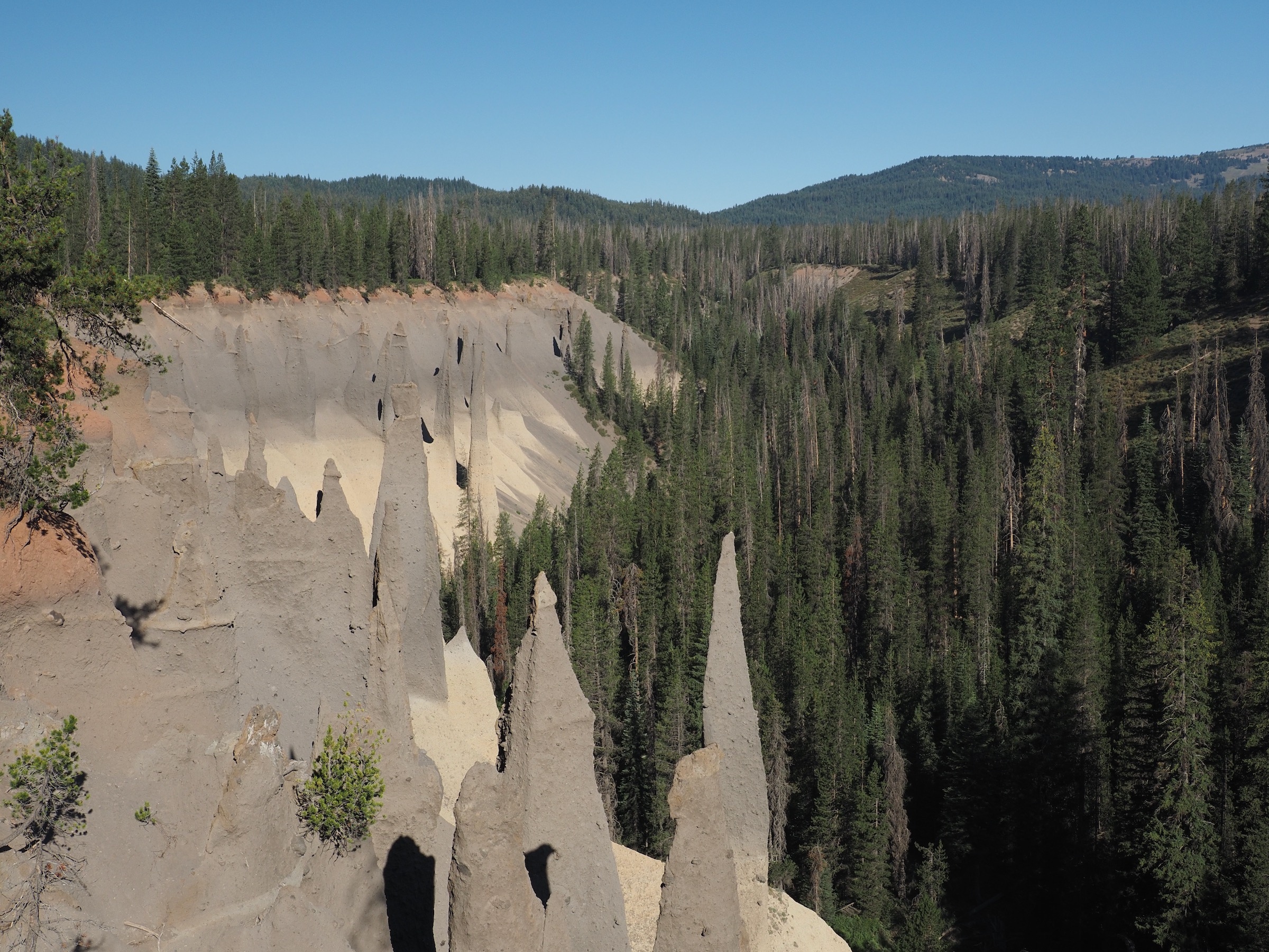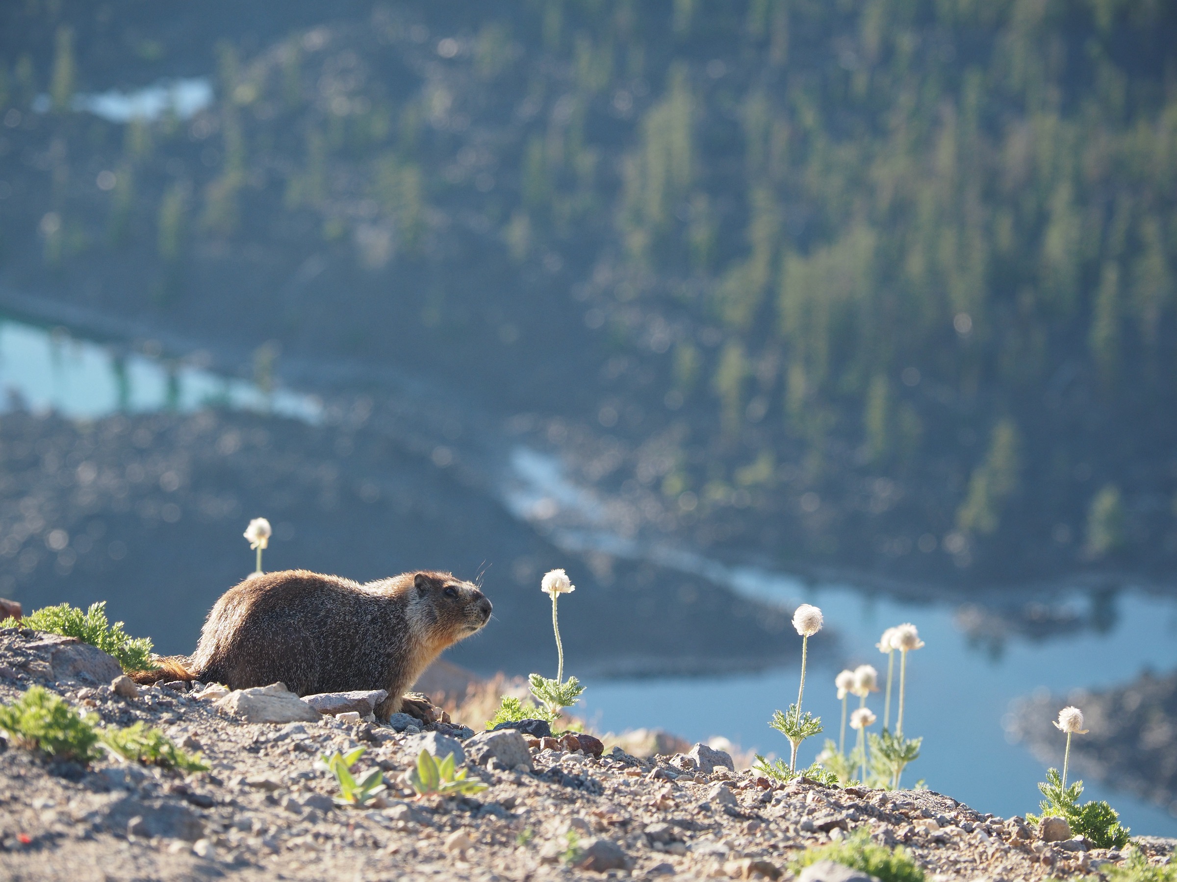 After sunrise, but with the light still low and the shadows long, we walked the mile-long trail to the historic watch tower and peak. Clark’s nutcrackers chattered away in the trees, and a deer grazed. Views at the peak were excellent.
