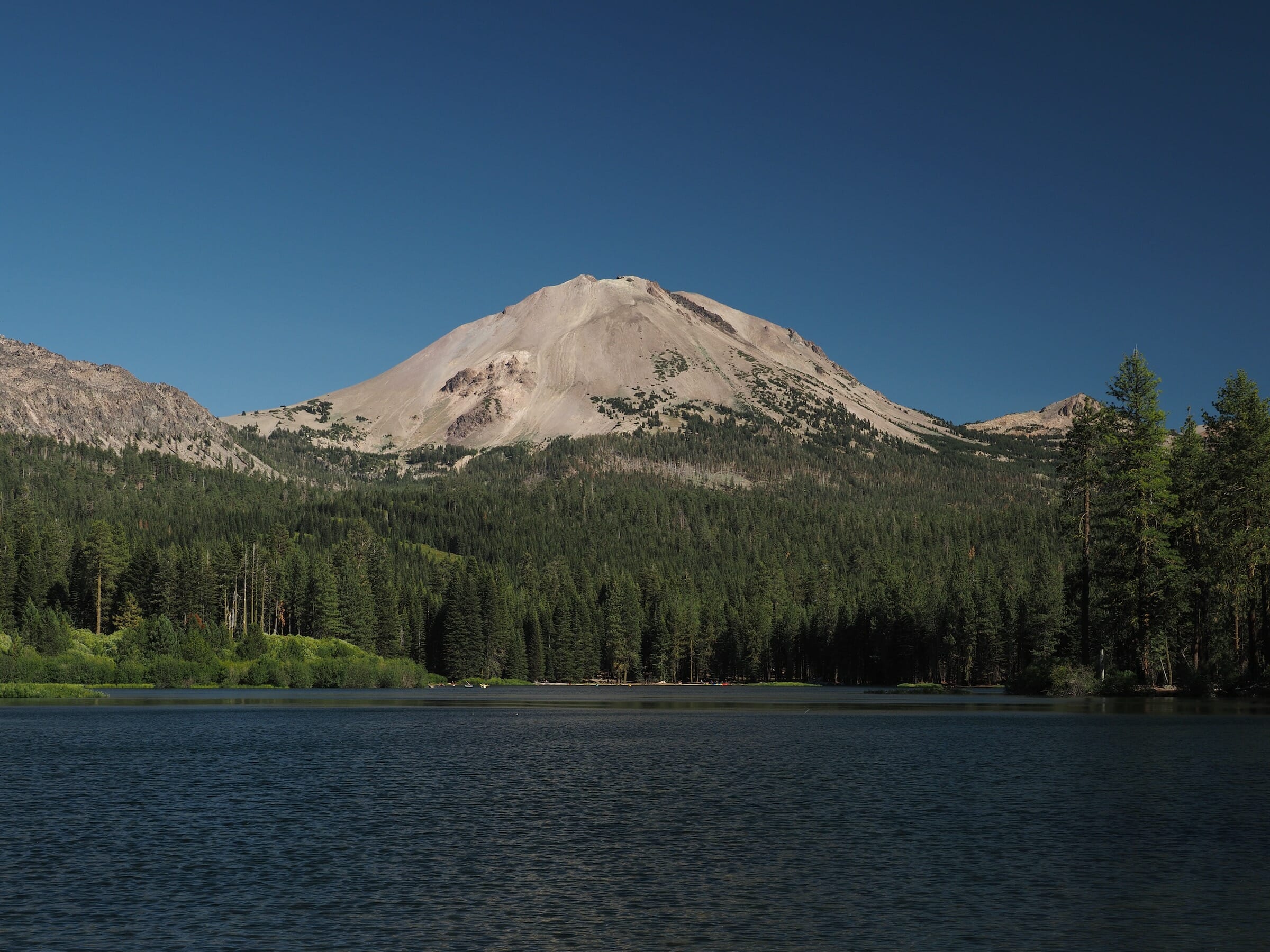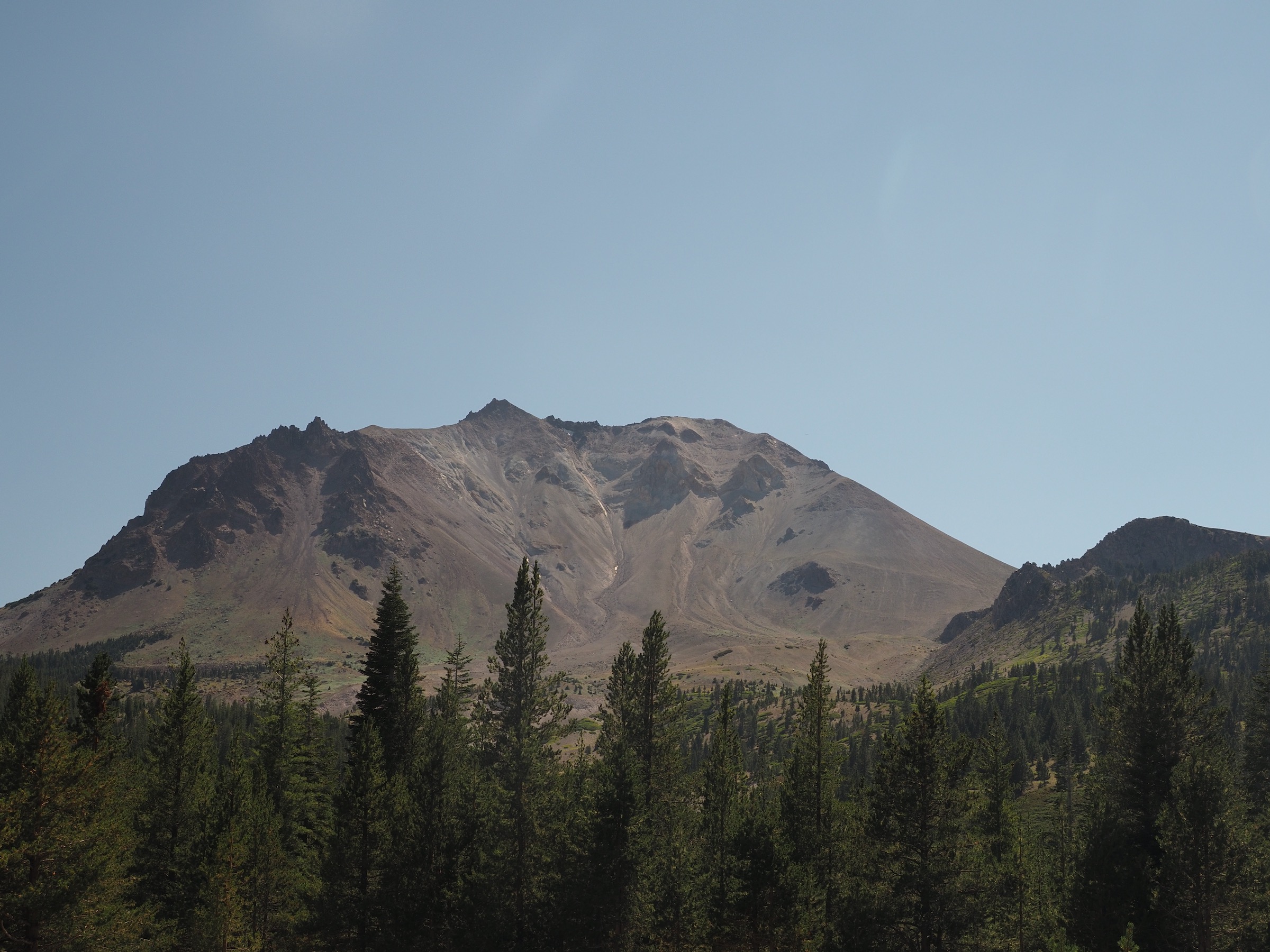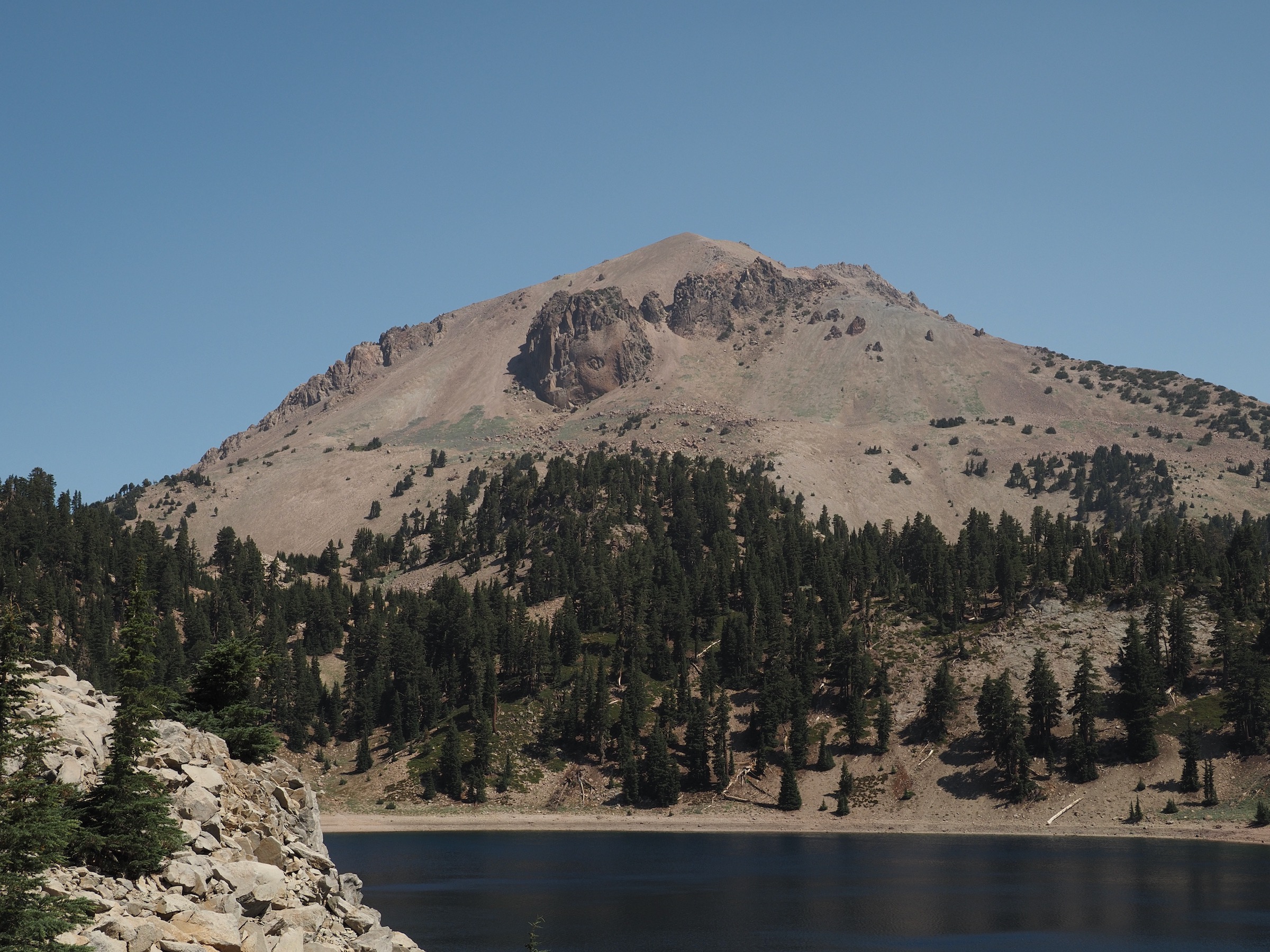 On our way out of the park, we stopped at the Devastated Area Interpretative Trail, which highlights rocks thrown up from the 1915 eruption with good signage explaining it. Our final stop was at Manzanita Lake. The north side of the lake offers great views back across the lake to Lassen Peak. While I knew the area was in drought, I was surprised at how completely bare of snow it was for July.
