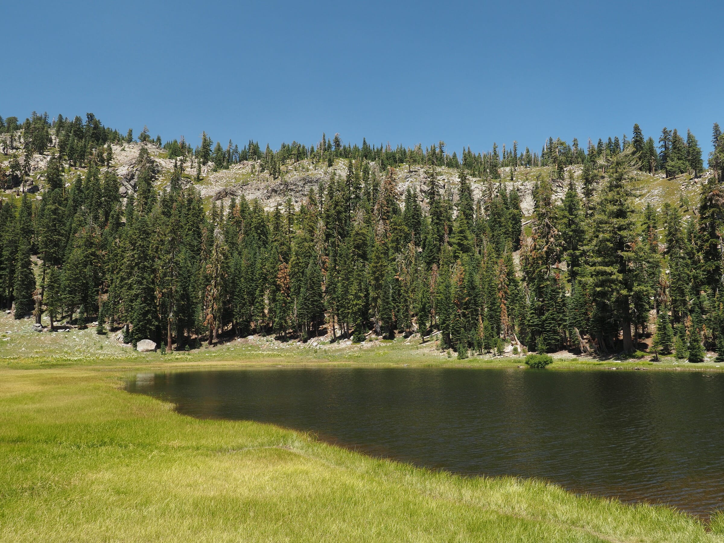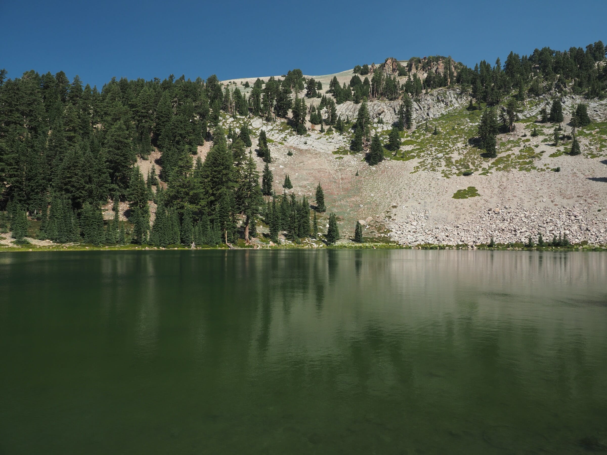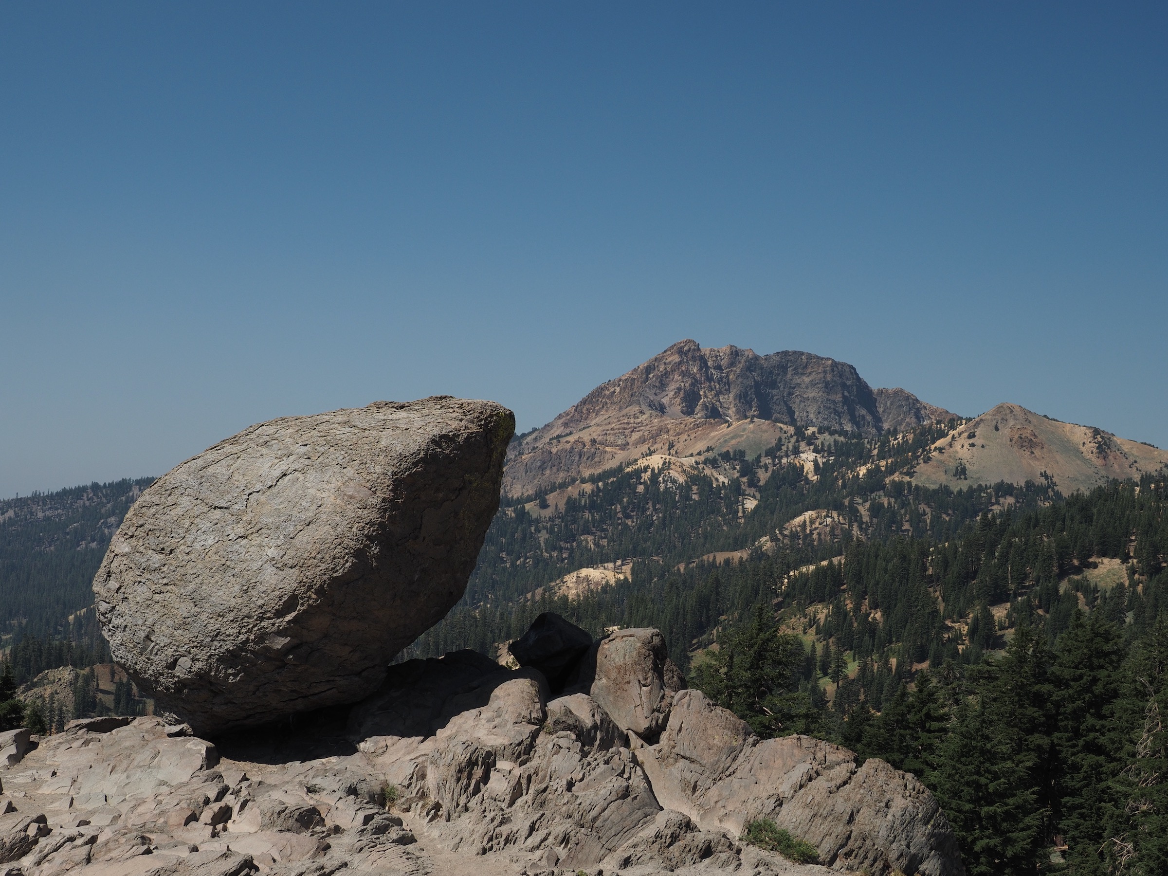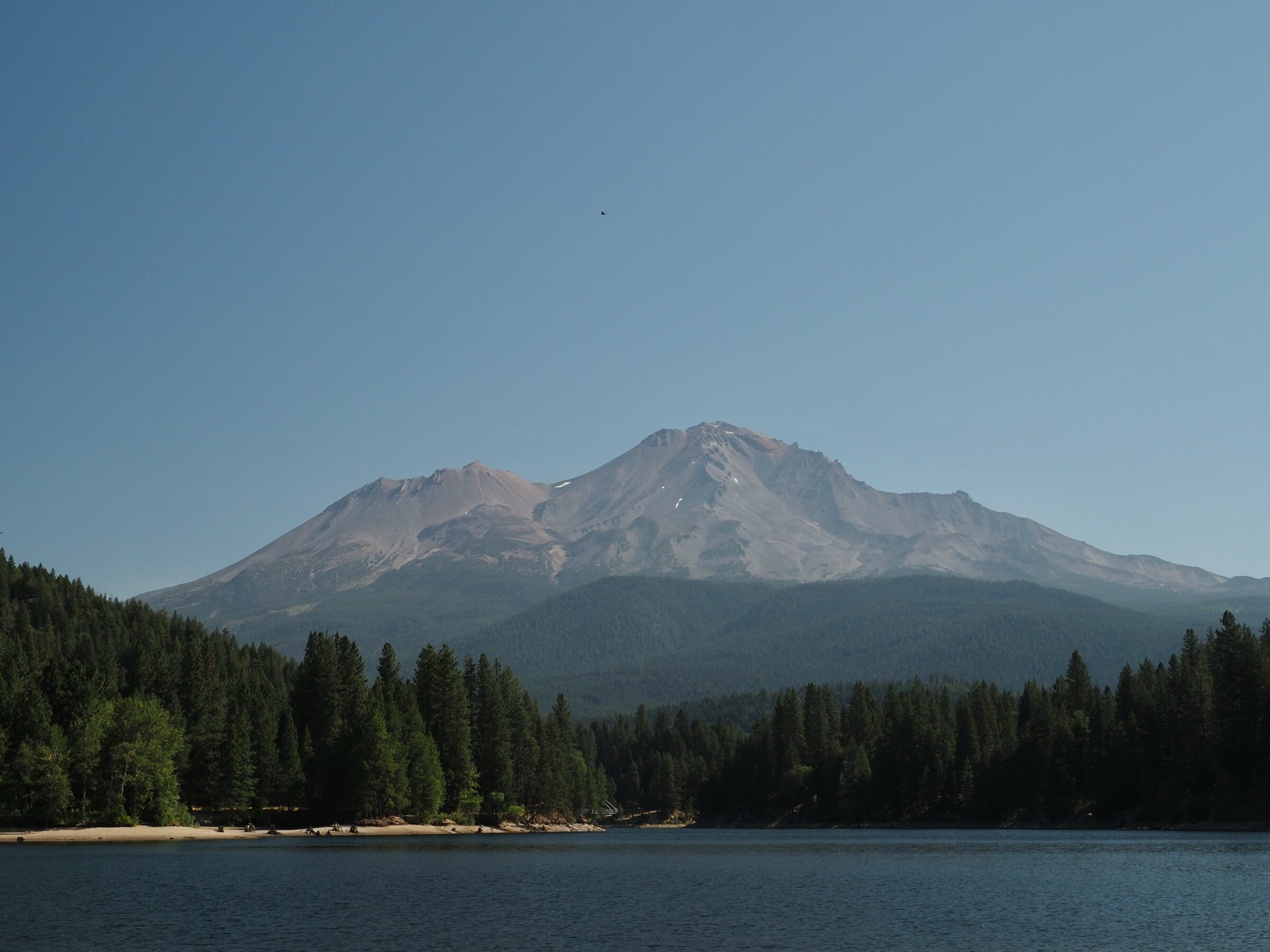 On our way out of the park, we stopped at the Devastated Area Interpretative Trail, which highlights rocks thrown up from the 1915 eruption with good signage explaining it. Our final stop was at Manzanita Lake. The north side of the lake offers great views back across the lake to Lassen Peak. While I knew the area was in drought, I was surprised at how completely bare of snow it was for July.