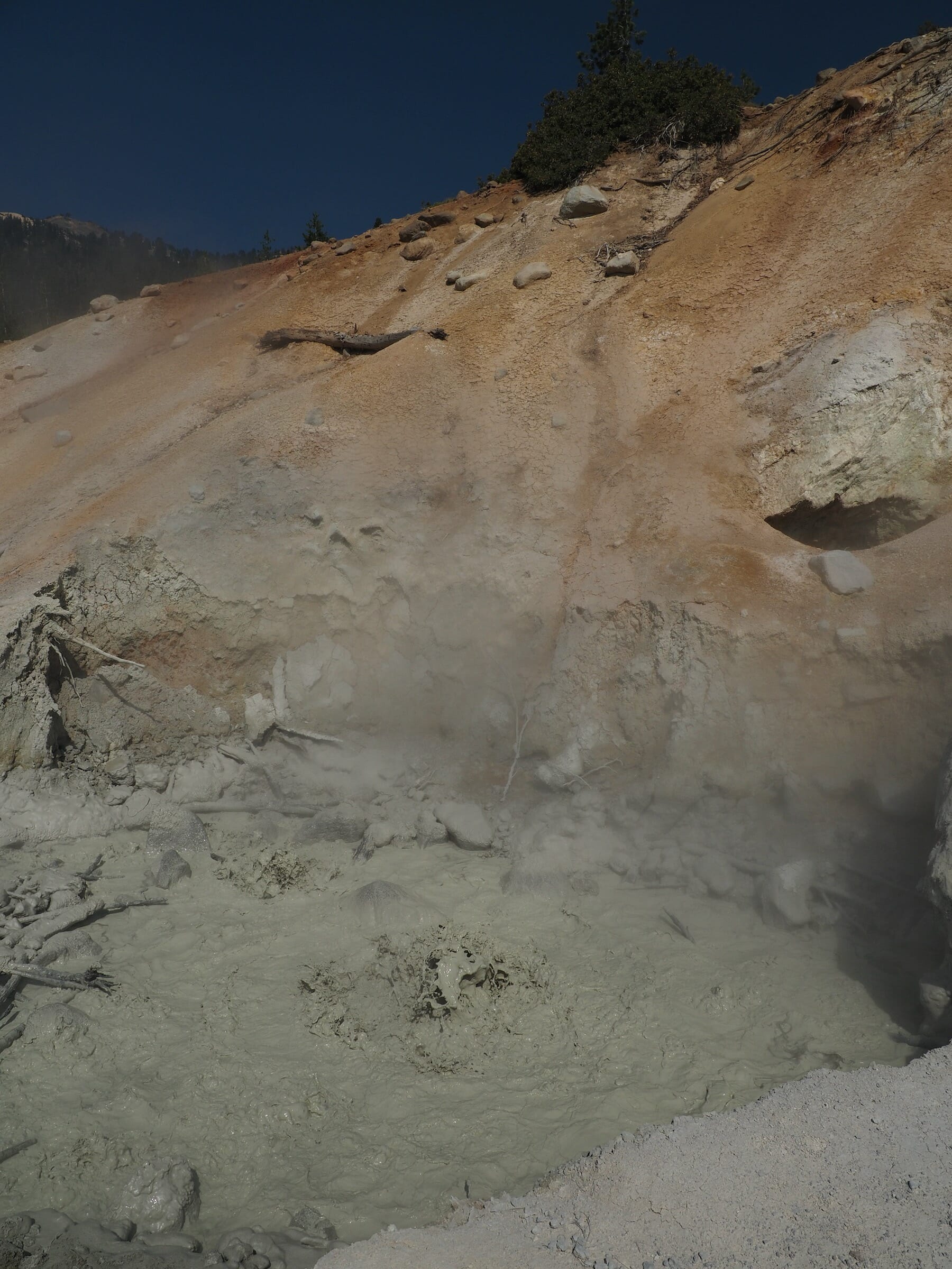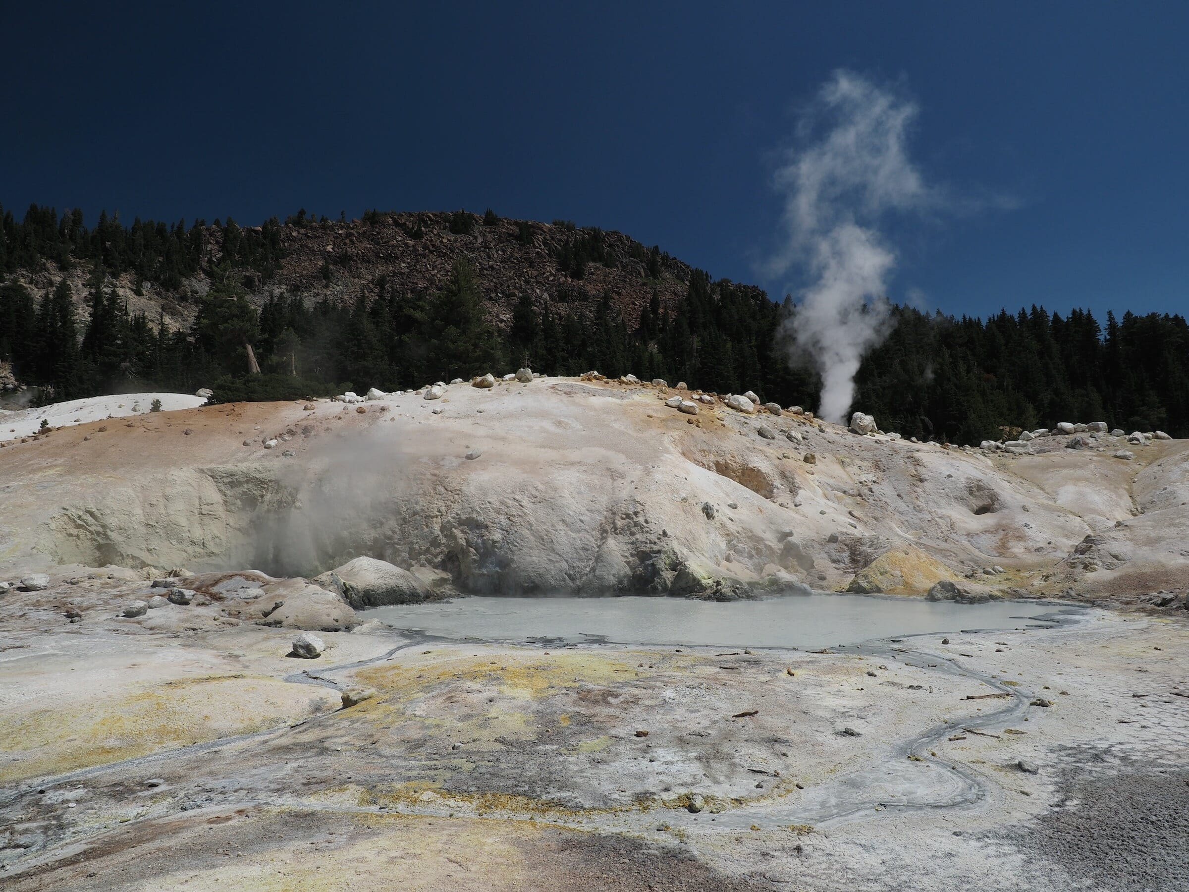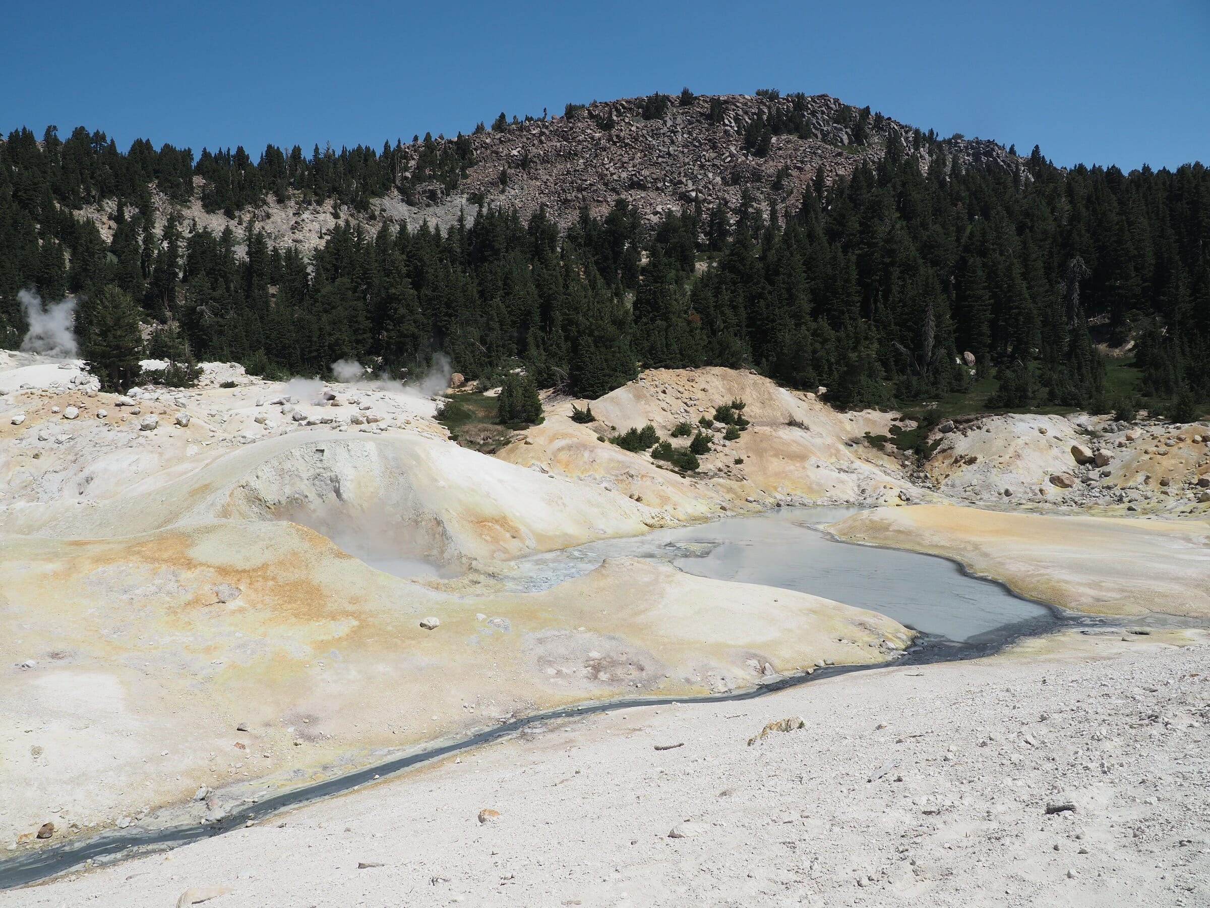 After Bumpass Hell, we went to Cold Boiling Lake. Here, a 1.6 mile out and back route leads to hydrothermal area where small amounts of bubbles float up through the lake. The park’s guidance indicates this is often a good area for seeing wildlife, but we were there alongside two large groups which would likely have scared anything away.