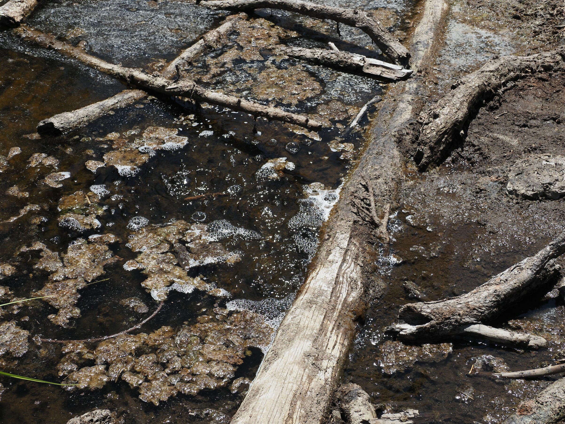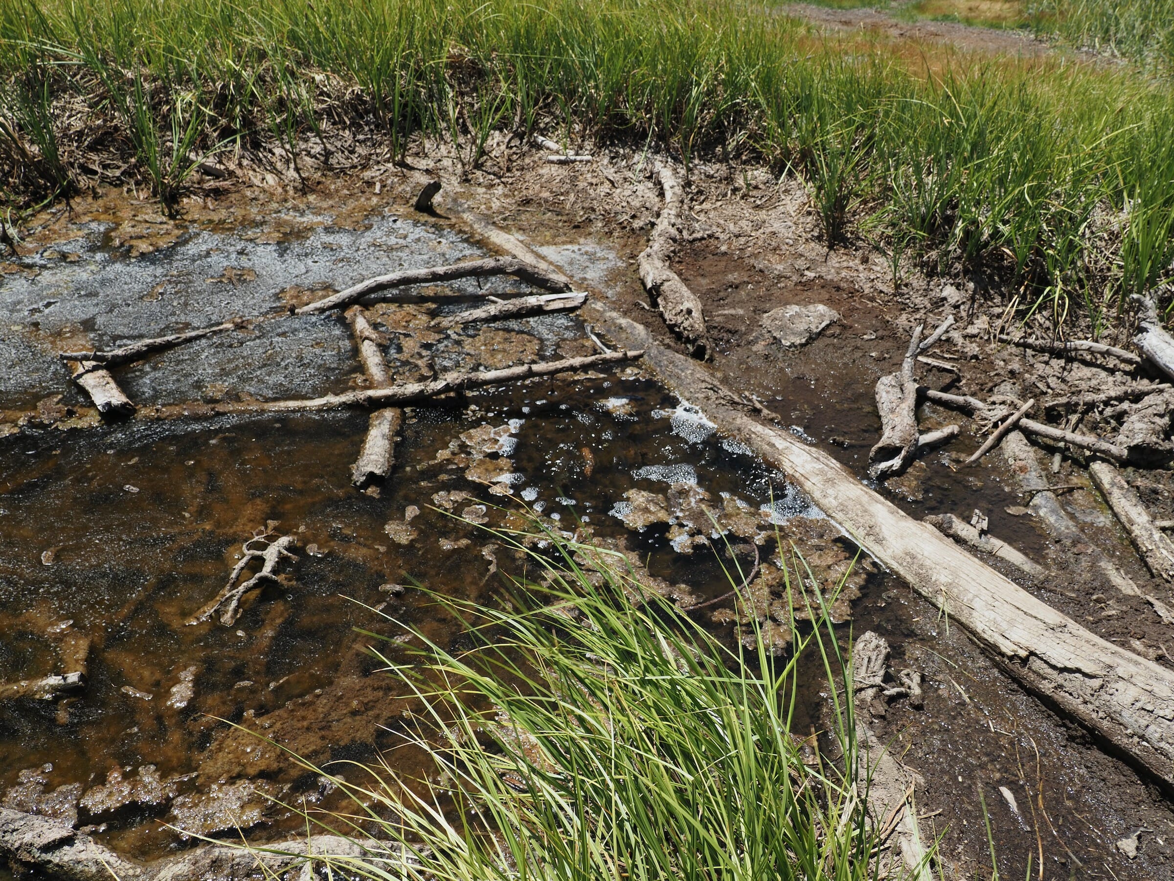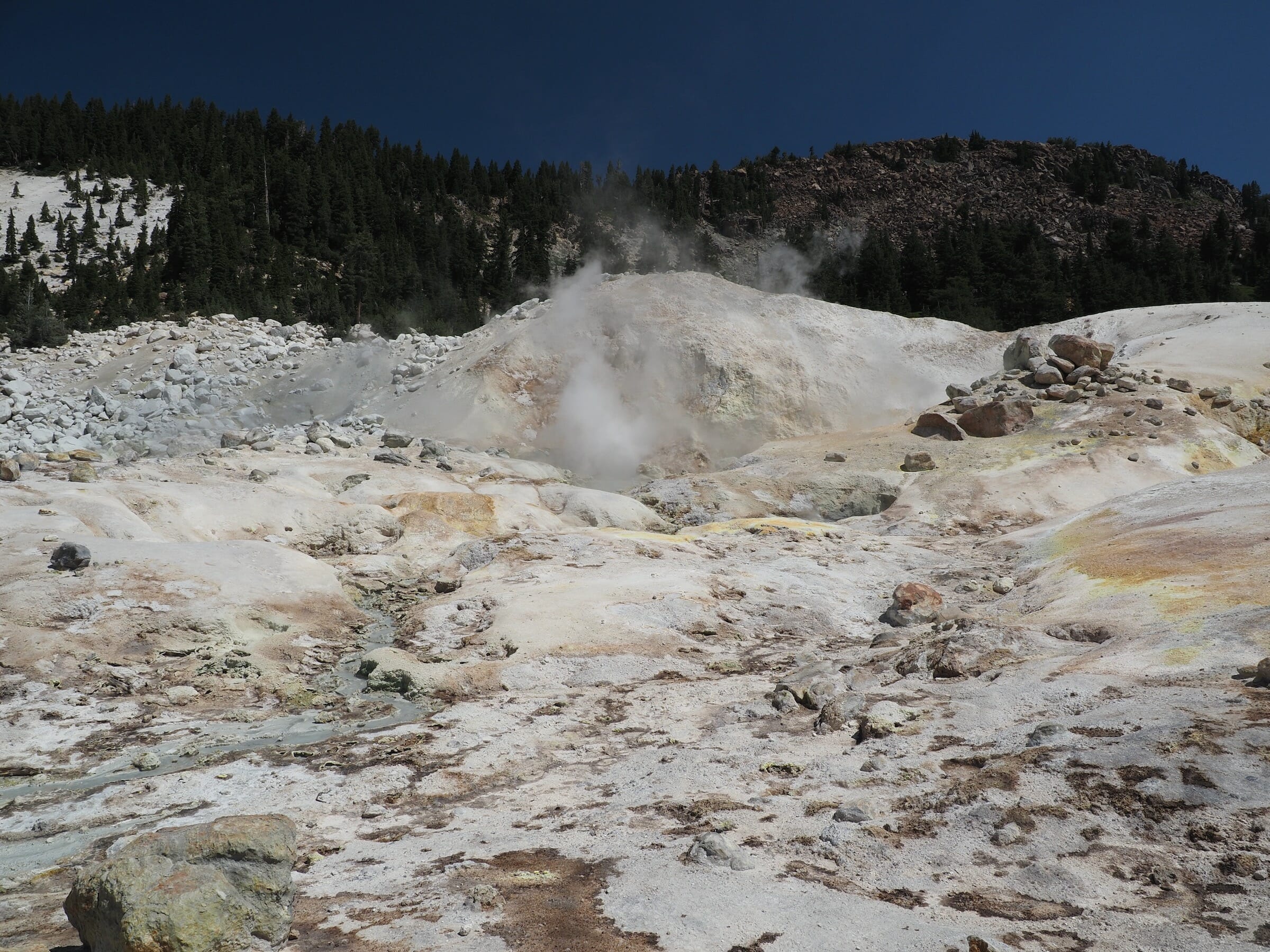 After Bumpass Hell, we went to Cold Boiling Lake. Here, a 1.6 mile out and back route leads to hydrothermal area where small amounts of bubbles float up through the lake. The park’s guidance indicates this is often a good area for seeing wildlife, but we were there alongside two large groups which would likely have scared anything away.