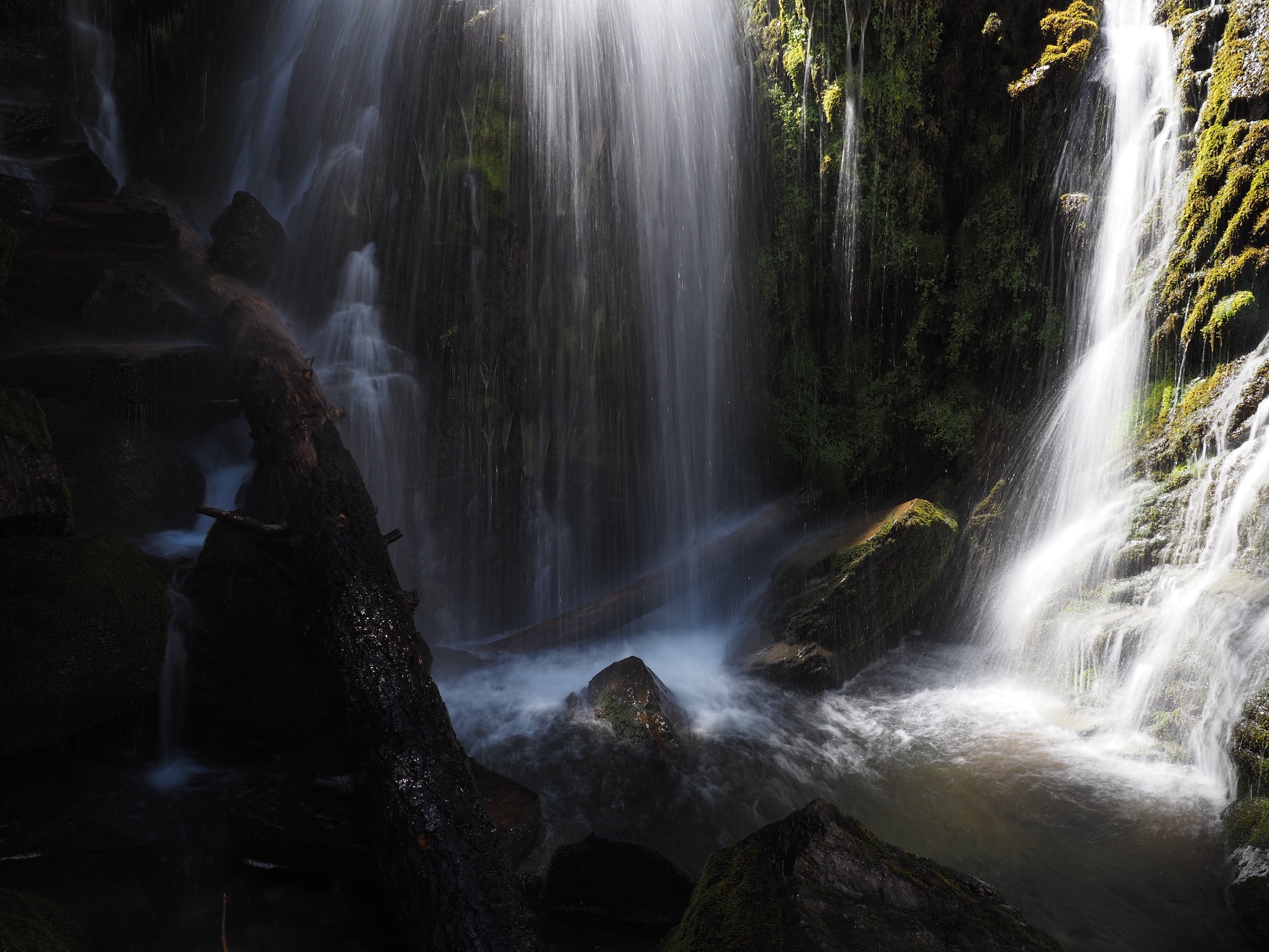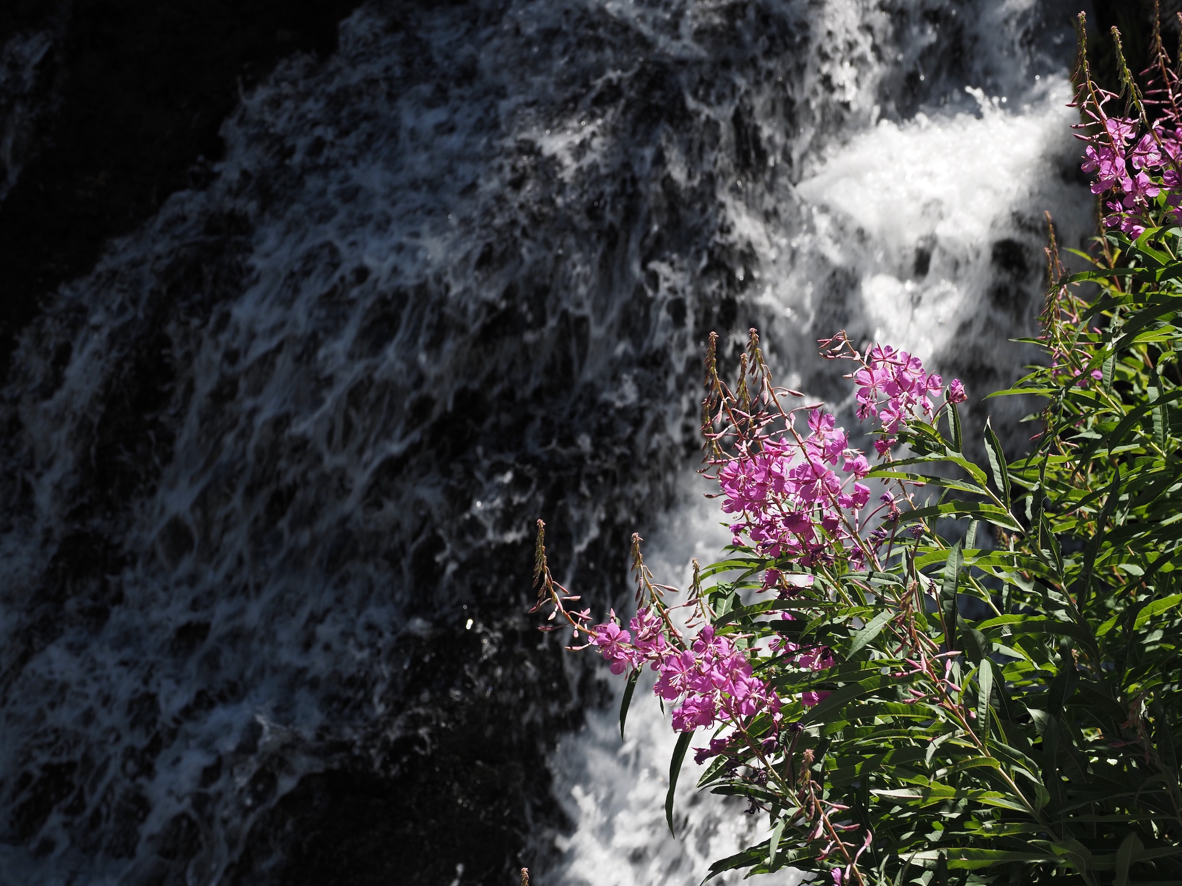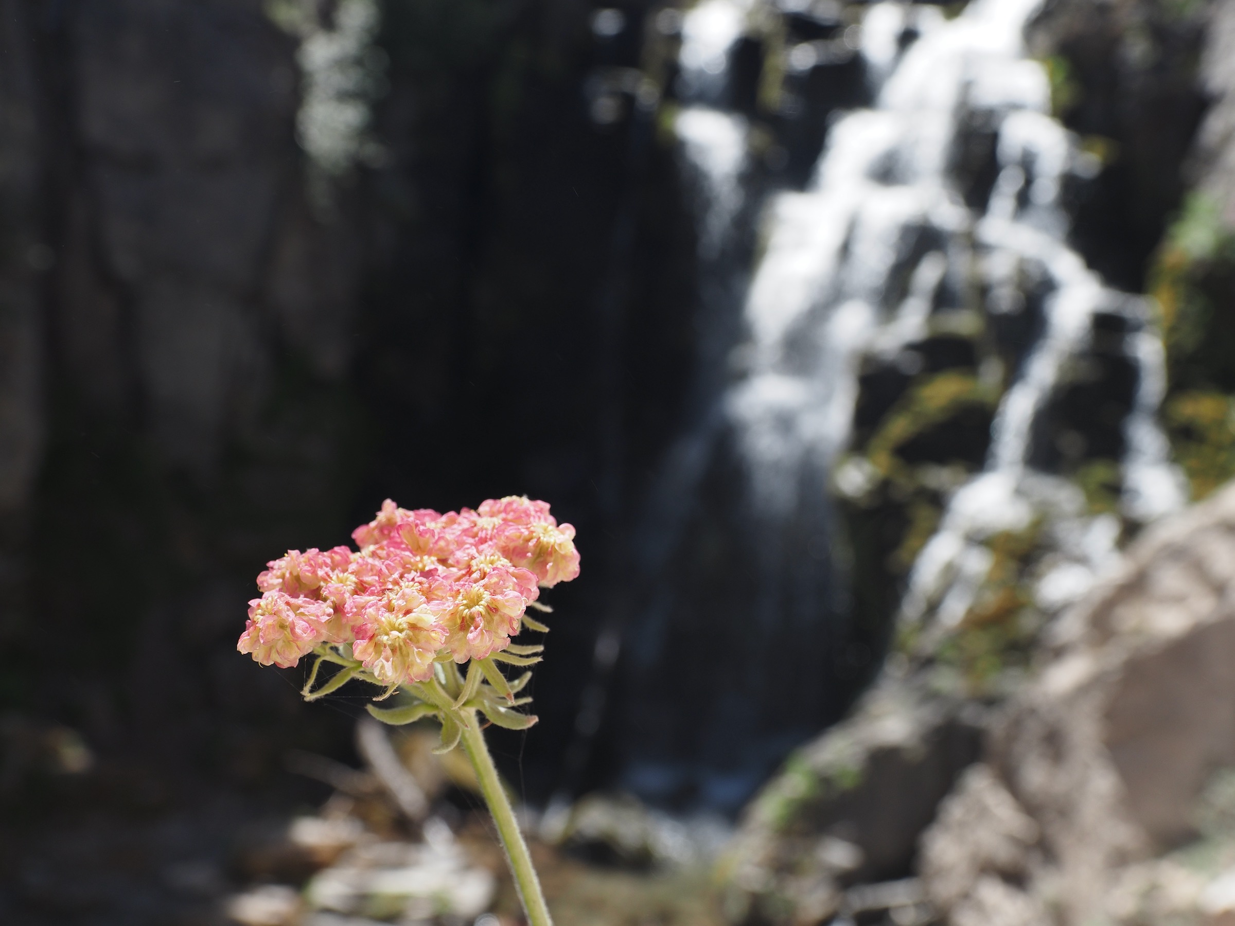 For our next walk, we selected King’s Creek Falls, where a 2.3 mile loop leads to a 30′ waterfall. There are fenced overlooks and a use path down to the base of the falls. Along the way, we had views to the ominous smoke plume generated by the Dixie Fire, miles distant. Later that summer, the Dixie Fire would burn through parts of the park. The falls were pretty, and we enjoyed the cascades along the one-way stretch back up from the falls.