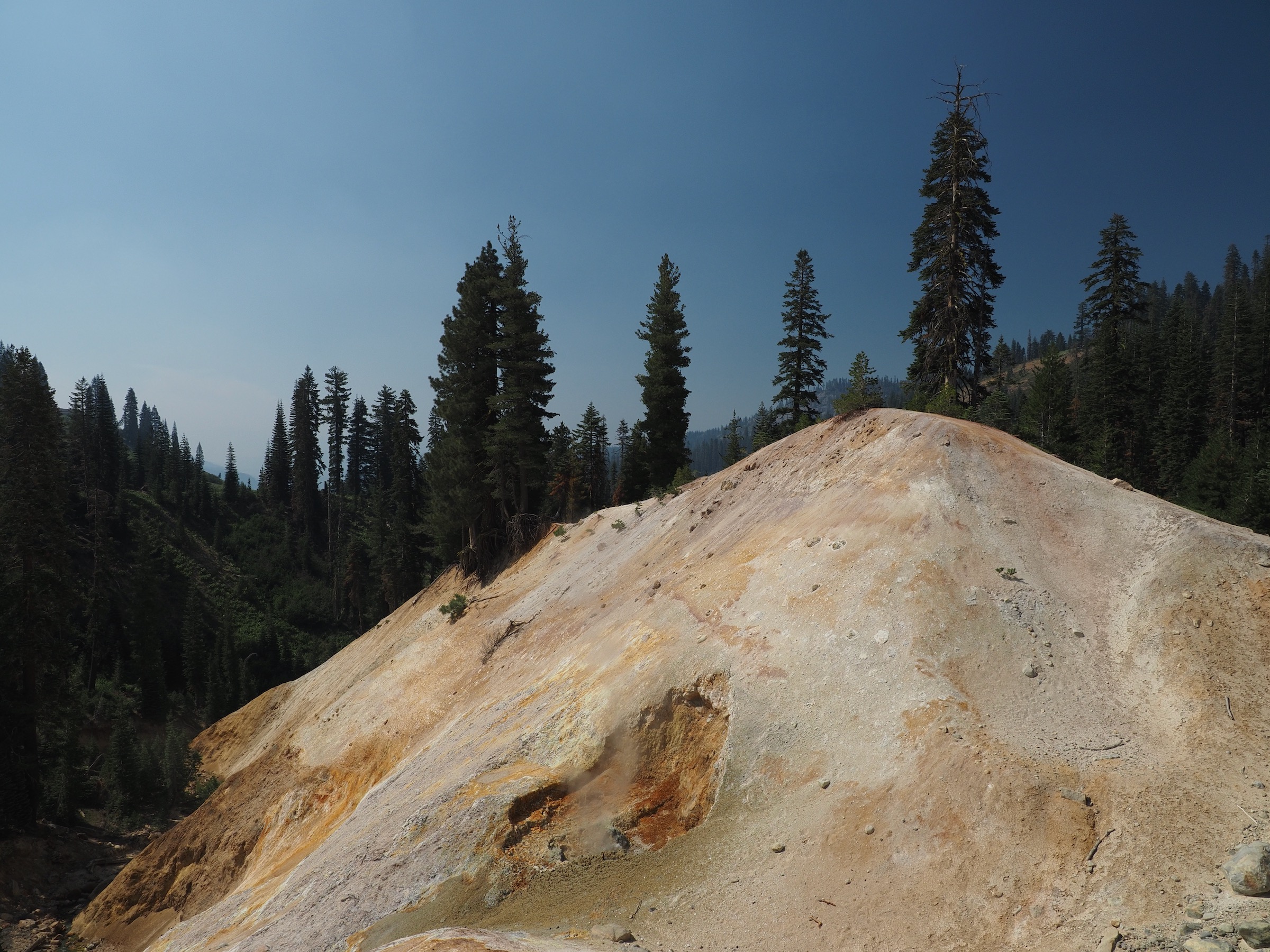 We woke up in Chester to smoky skies and a layer of ash on the car. The forecast suggested the winds were blowing most of the smoker clear of Lassen, though, so we decided we would still proceed to the park for the day. We did modify our plan to focus on shorter walks rather than climbing Lassen Peak. If the winds changed and blew in smoke, we did not want to be up high.