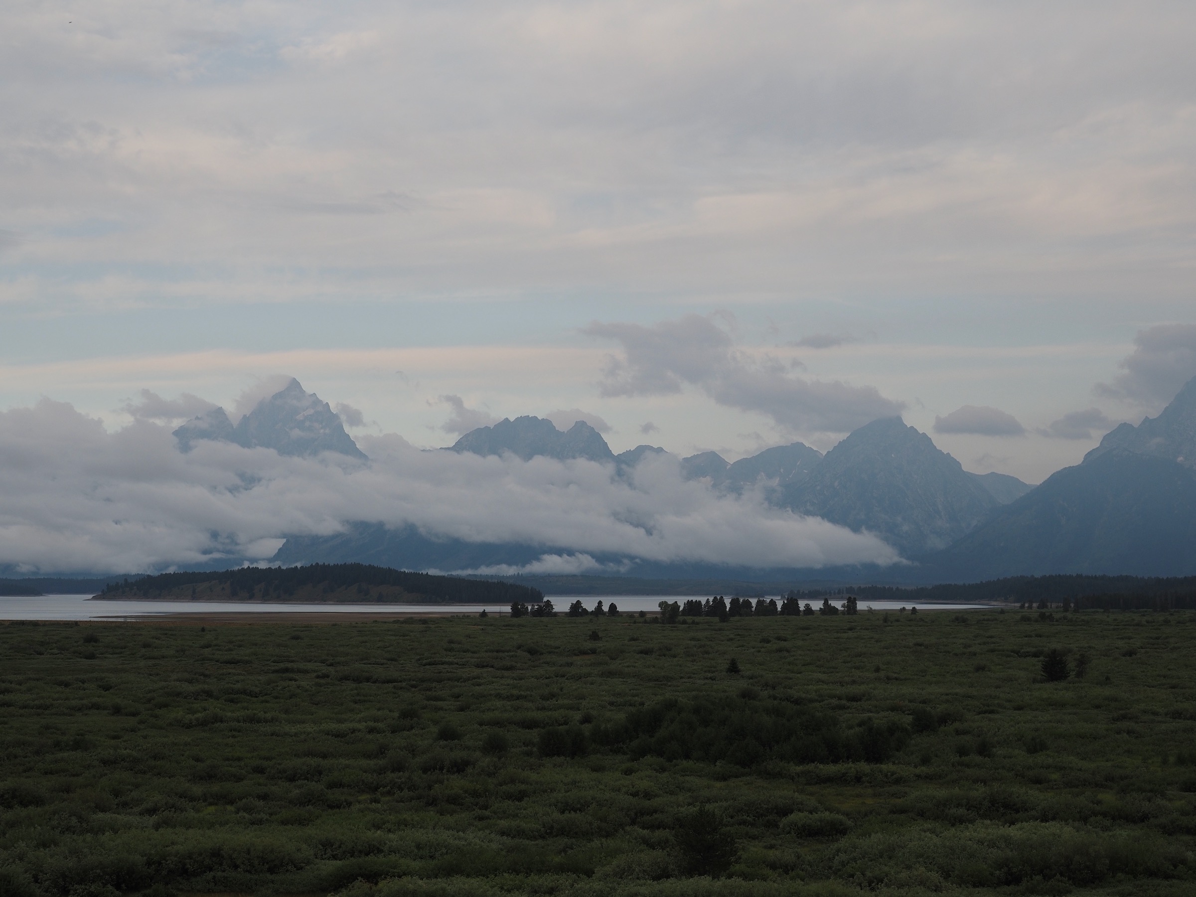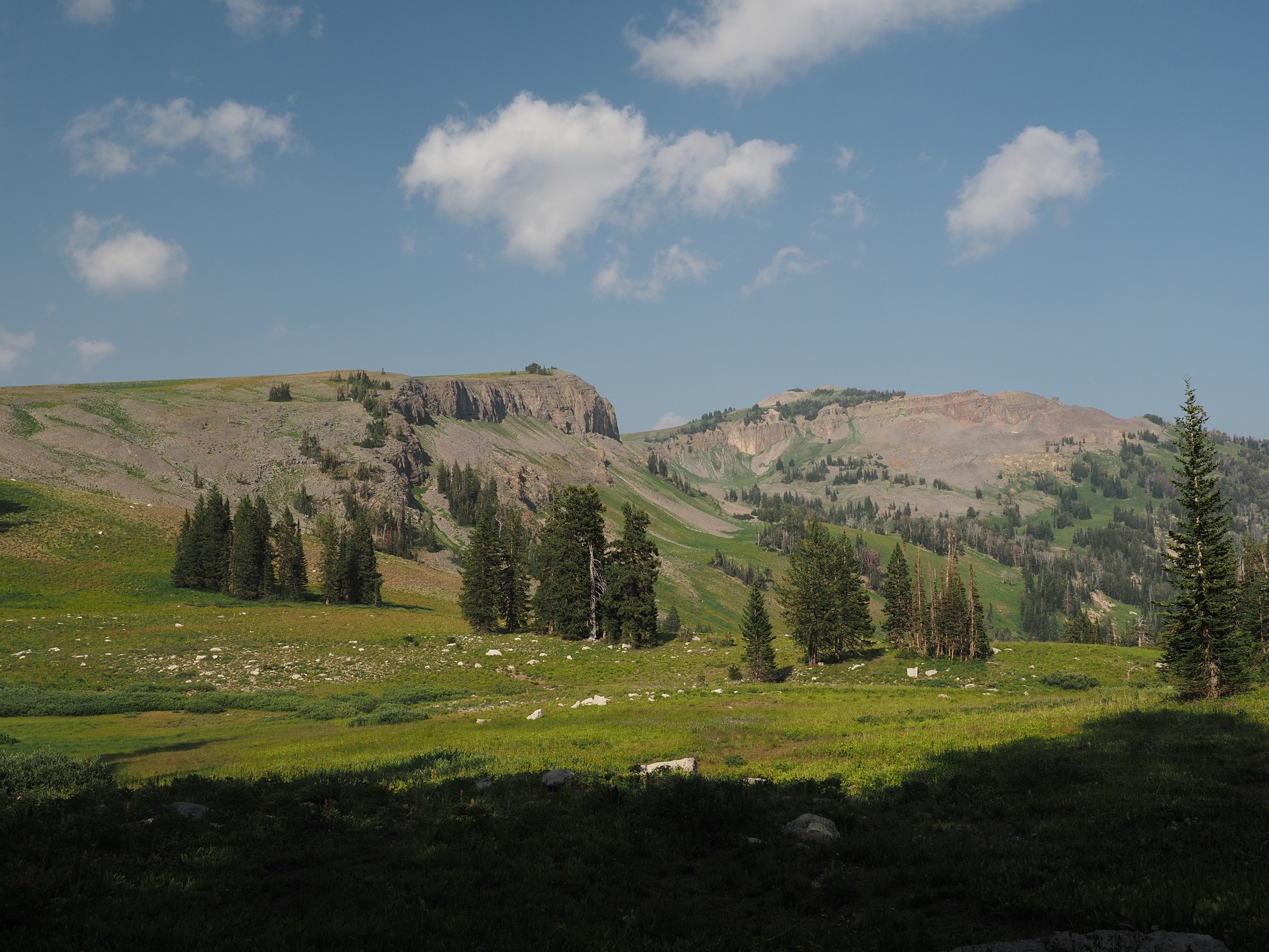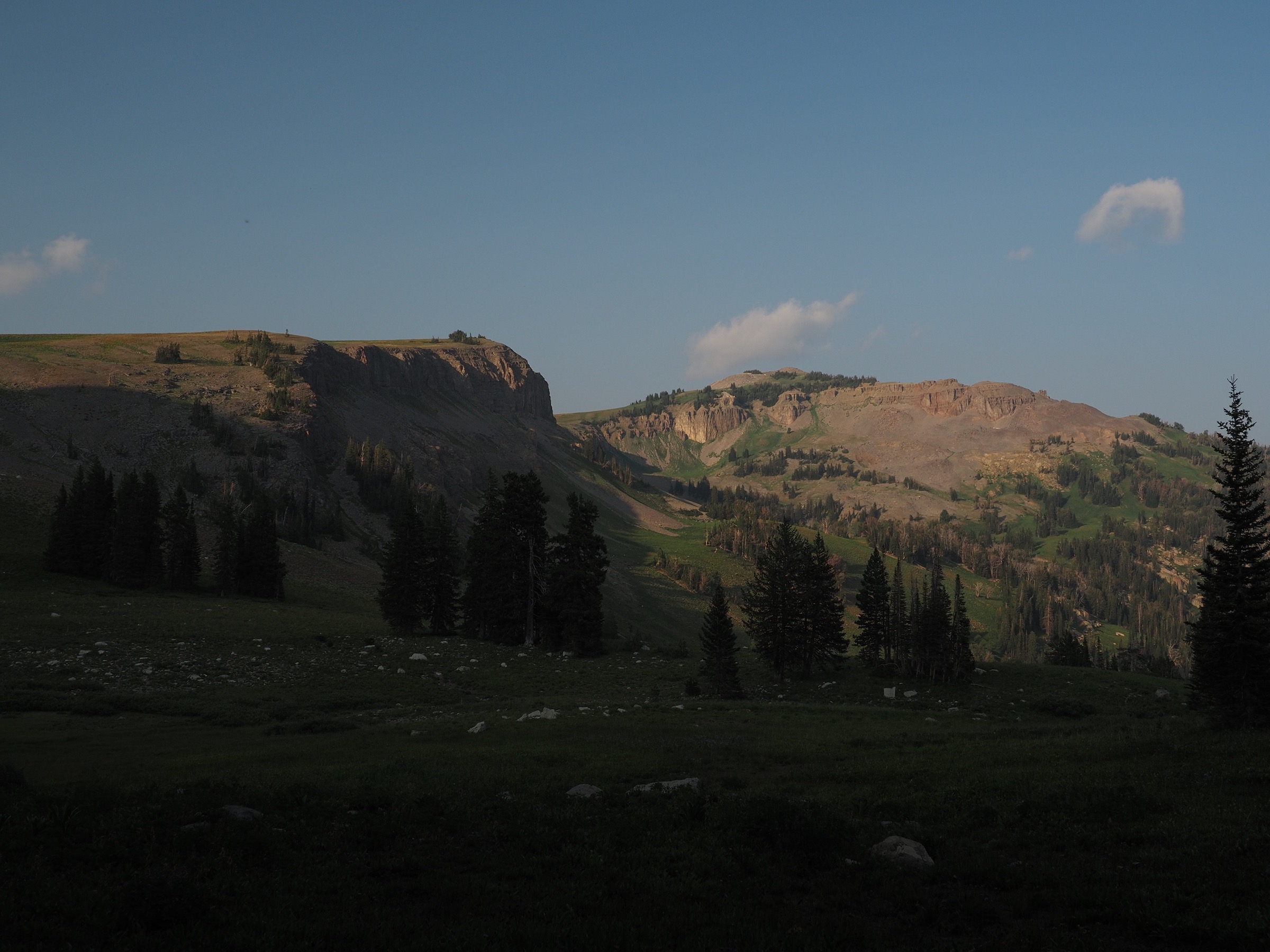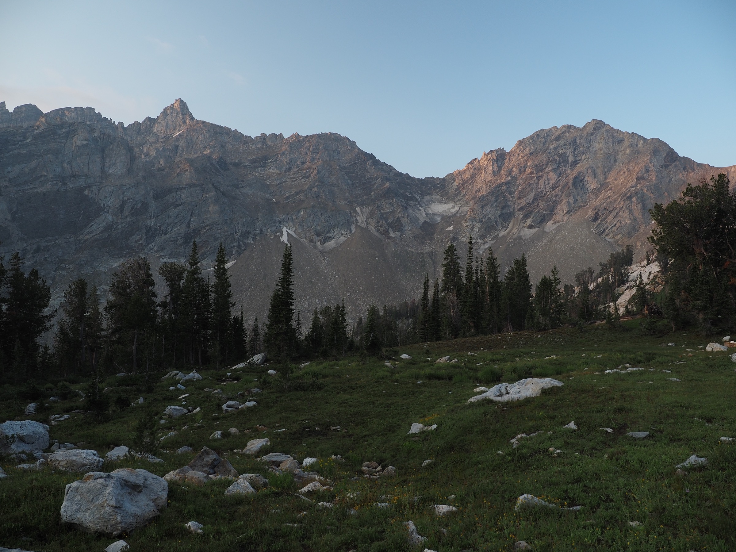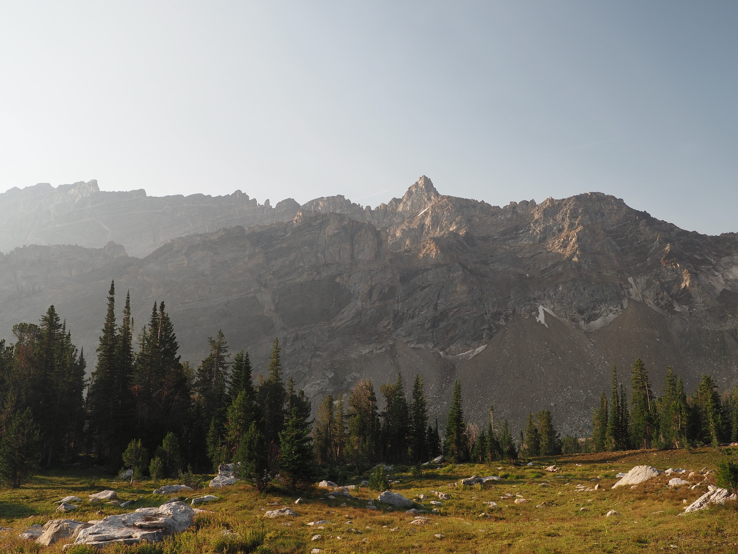 Following the advice of the ranger the previous night, we decided we would camp at the northern end of Death Canyon Shelf, as it offered appealing options for views. Getting further along the shelf would also shorten the next day, giving us more time to explore Alaska Basin or to try to stay ahead of some forecast storms.