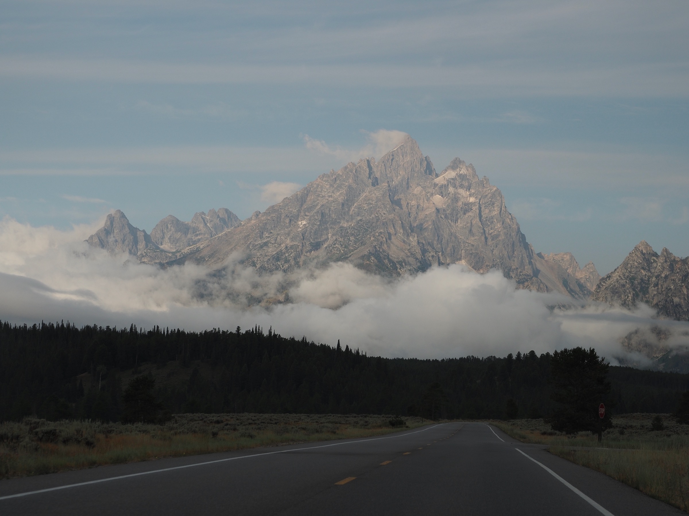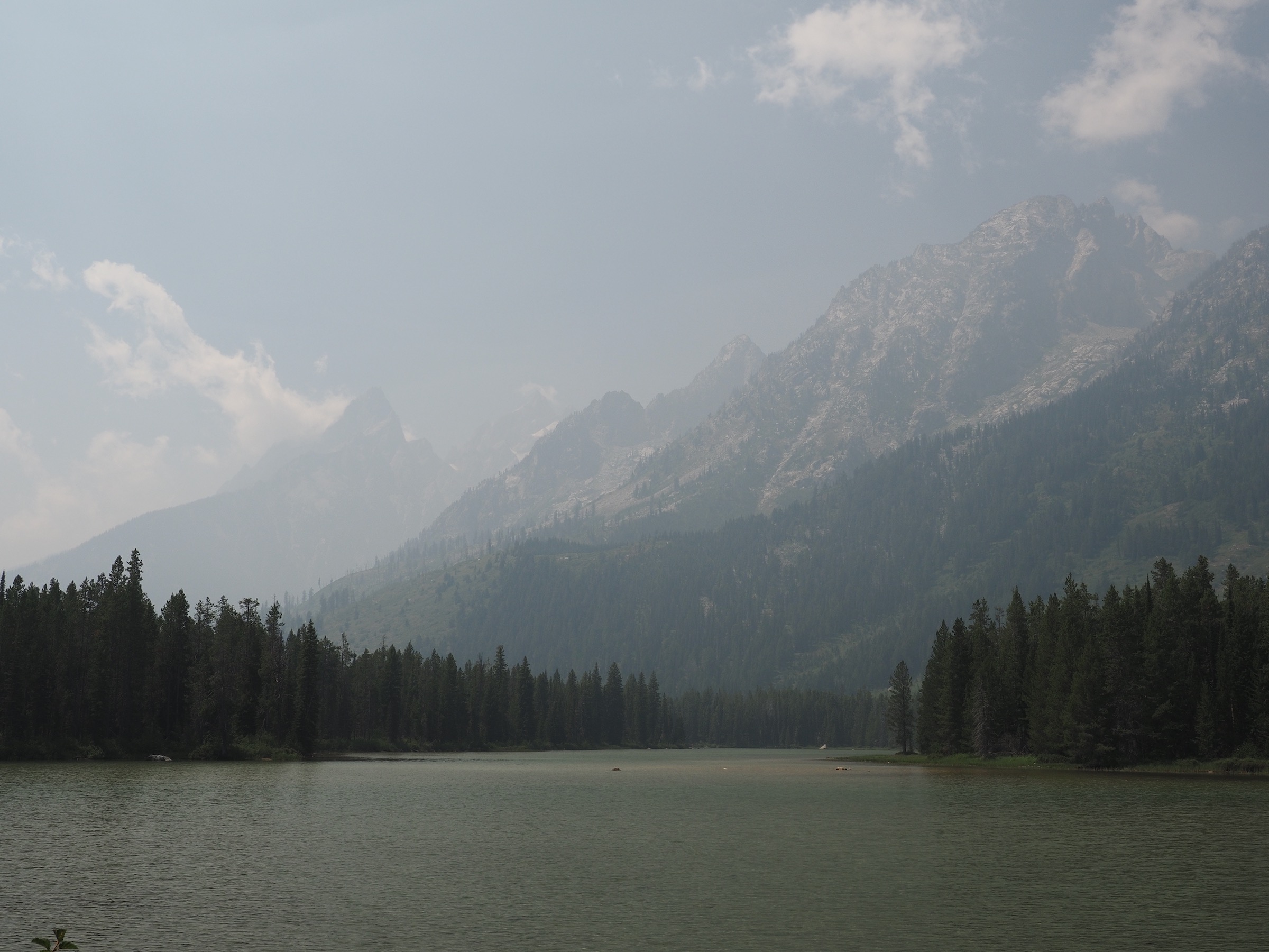In the morning, we awoke early and checked out of Colter Bay Village. We made a quick stop at Jackson Lake Lodge for breakfast and coffee before leaving our car at the String Lake Trailhead.