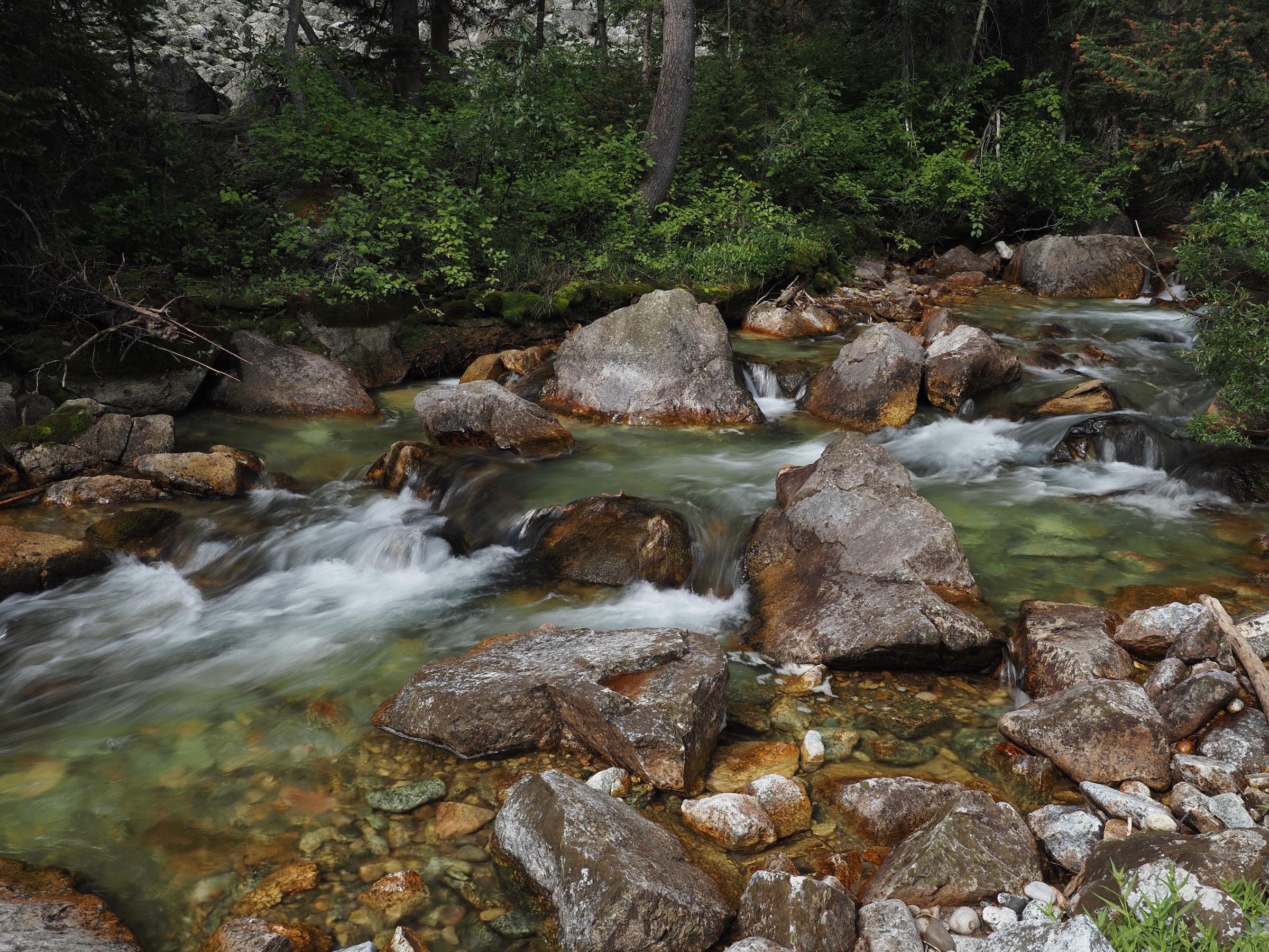 We ate breakfast and packed up slowly. The theme of “slow” continued as we headed down Paintbrush Canyon. We sought to enjoy every last bit of our hike on the Teton Crest Trail. The day’s hike was all descent, so, despite not rushing, we soon reached the stream between Leigh and String Lakes. There, we crossed a bridge and followed the trail back to our car.