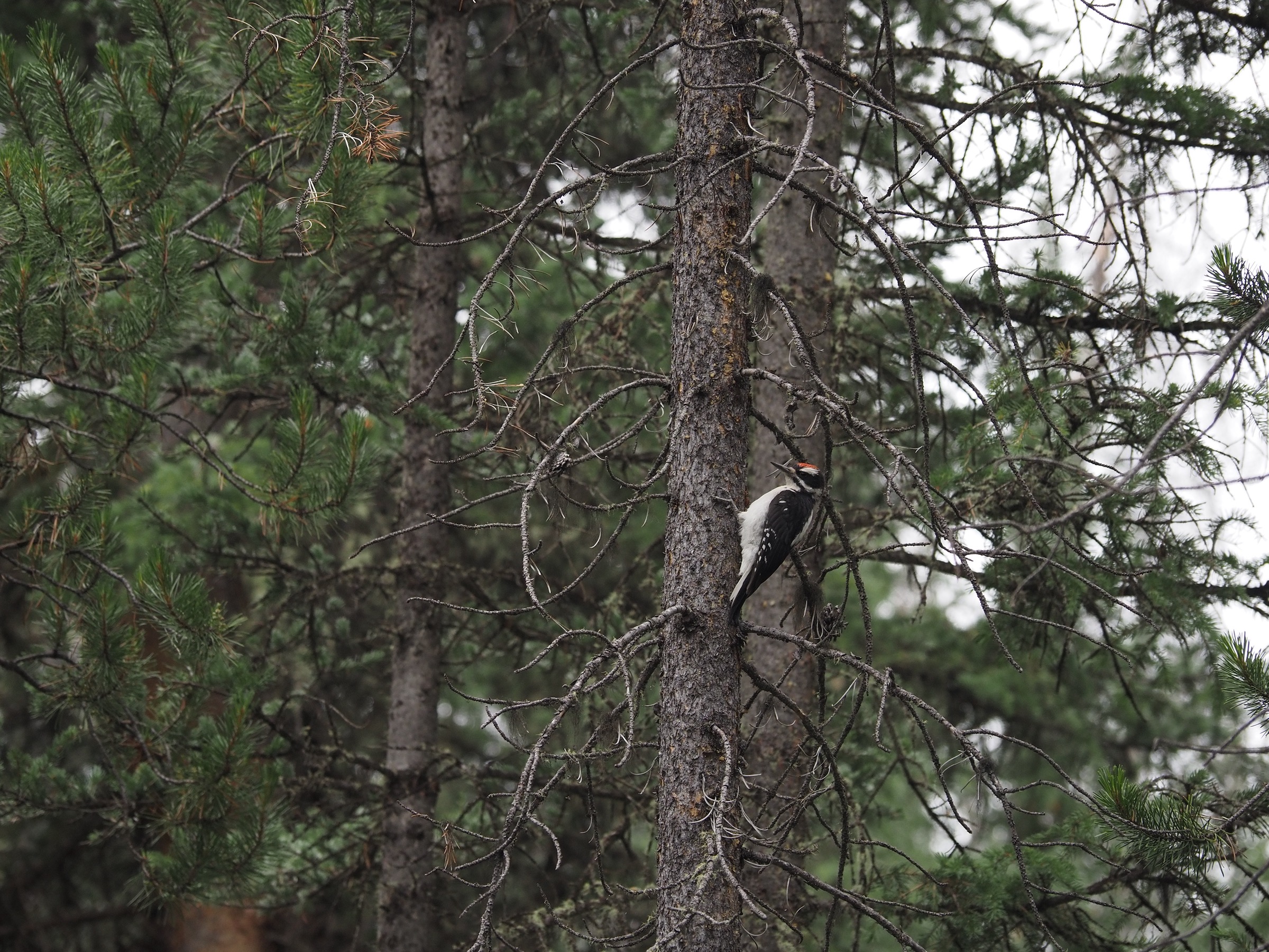 From the trailhead, we took the Lakeside Trail around the west side of Lower Green River Lake. This stretch had some gentle ups and downs and was mostly forested, sheltering us from passing showers. Hairy woodpeckers kept us company throughout this part of our walk.