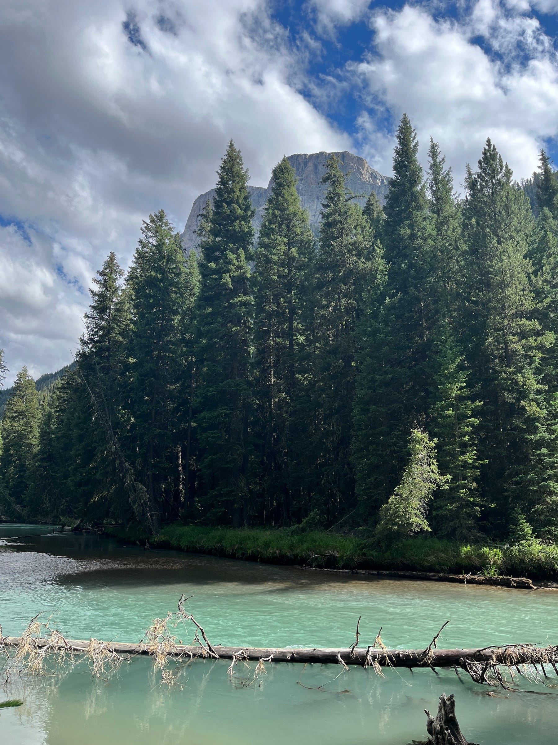 At Beaver Park, we turned off to scout out sites. The river through here is very pretty, but most of the sites we looked at did not have views of the mountains. So, we continued on the trail.