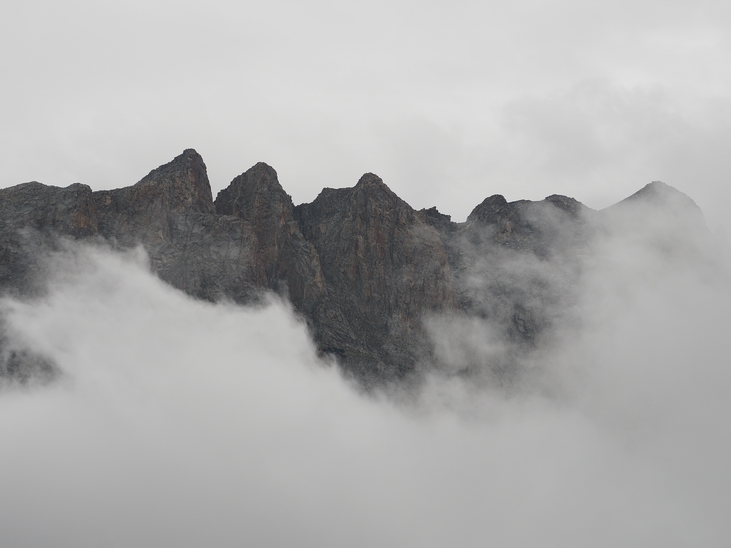 I’m not sure we could ever have our fill of that view, but eventually we decided we should head down. We were still hoping to beat the storms to our camp for the night, and, if not successful in that, at least be off the passes by the time they caught us.