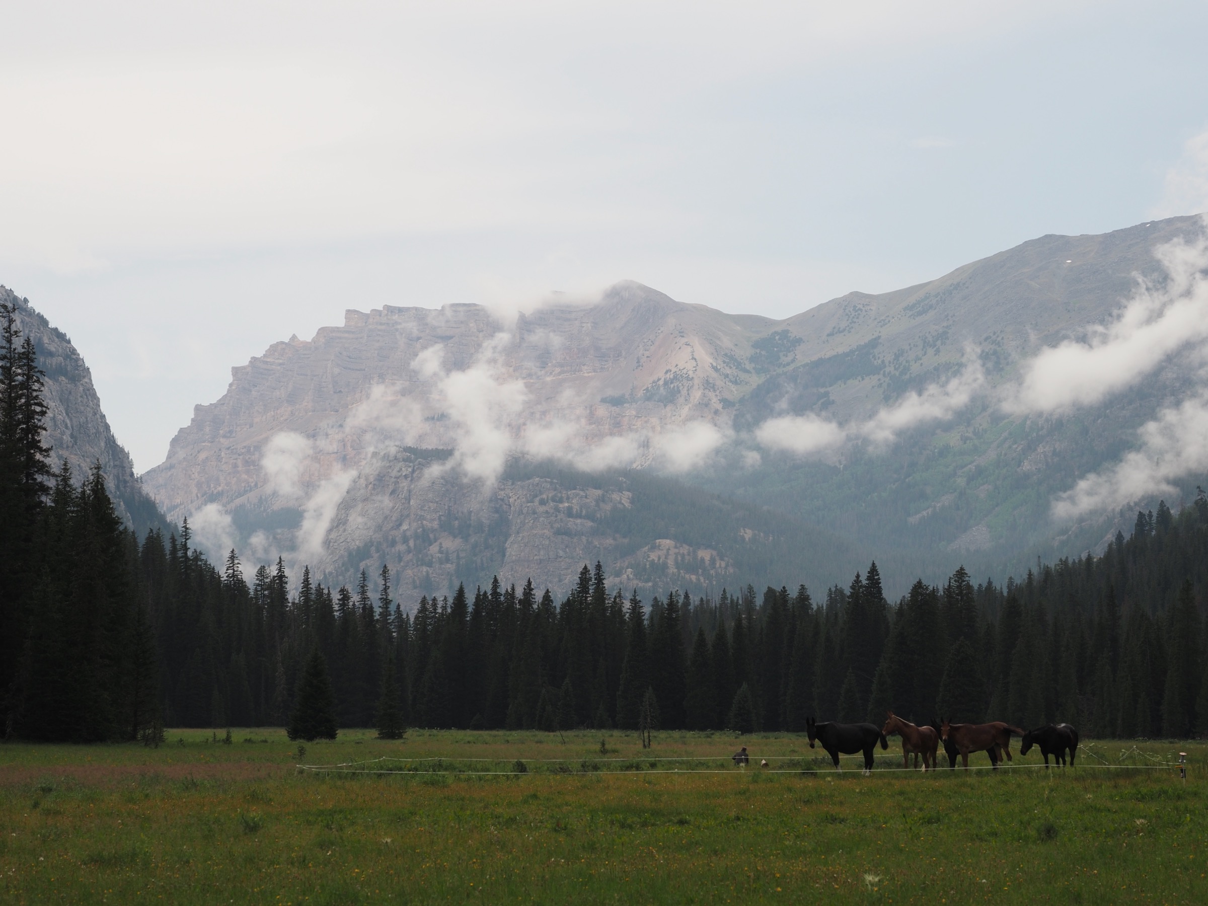 While searching out a site, we talked with two horse packers (and visited with their dogs) who had come in a couple of days earlier, after changing up their plans based on a fire in Idaho. They warned us that the flies were bad–something we had so far avoided due to the showers–so bad, in fact, that they would head out early the next day.